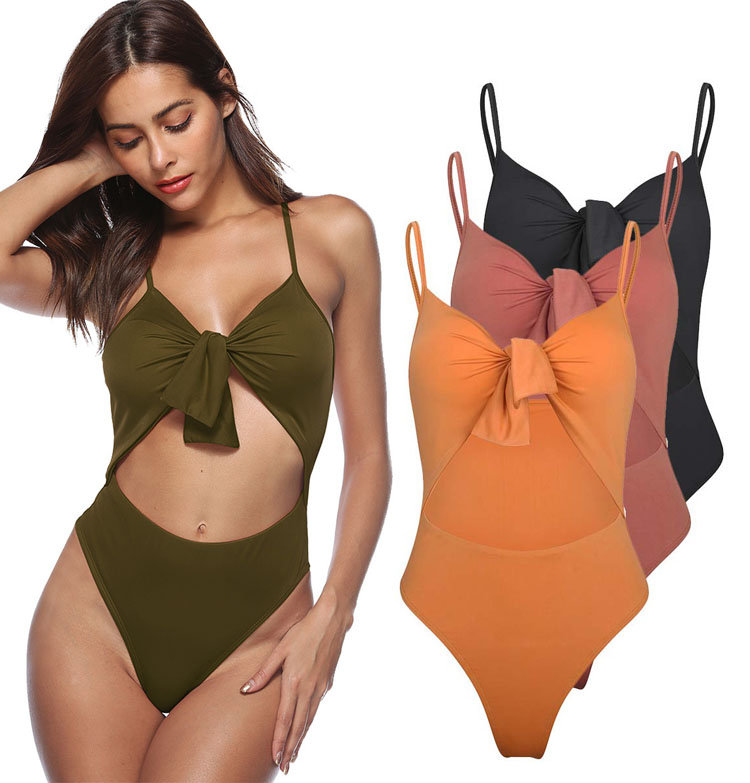 Sexy Front Tying Hollow Adjusted Backless One Piece Swimwear For Women