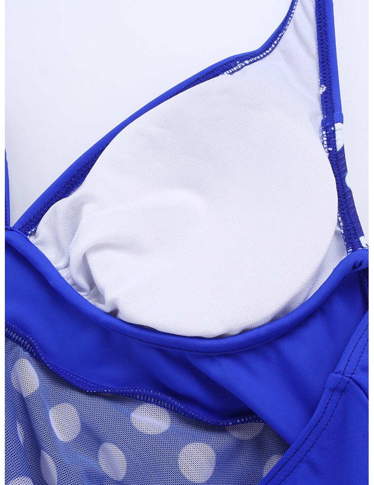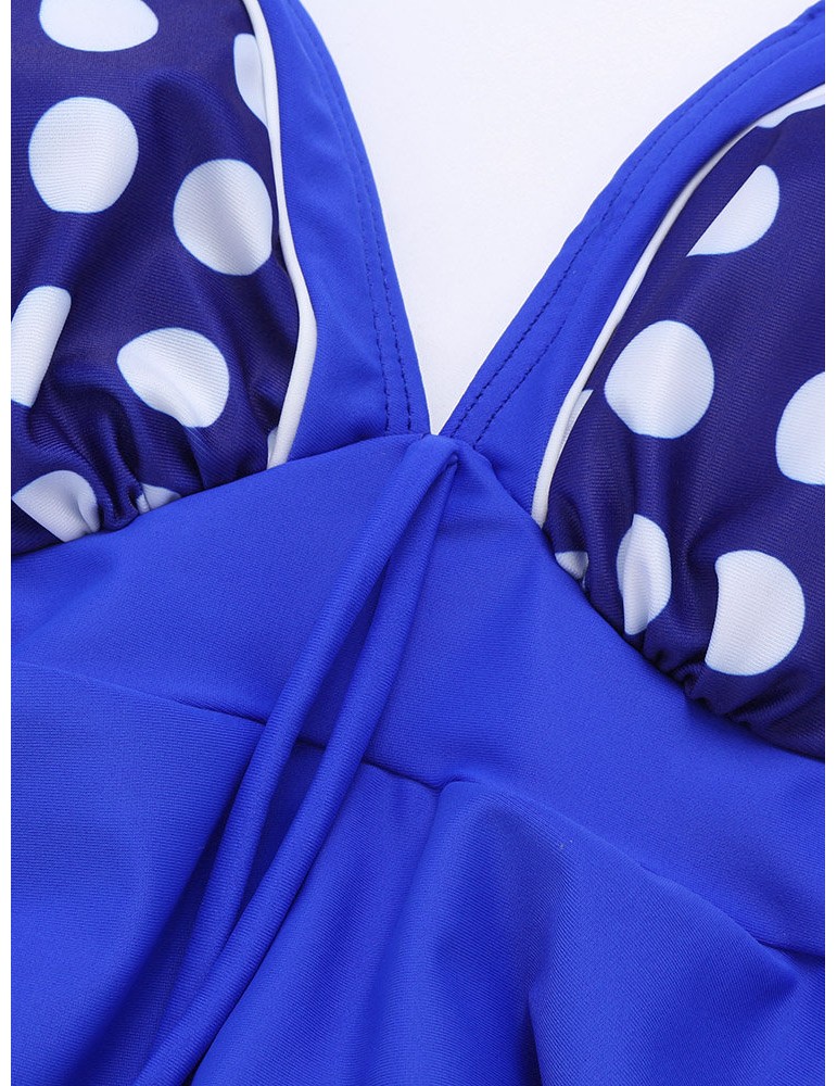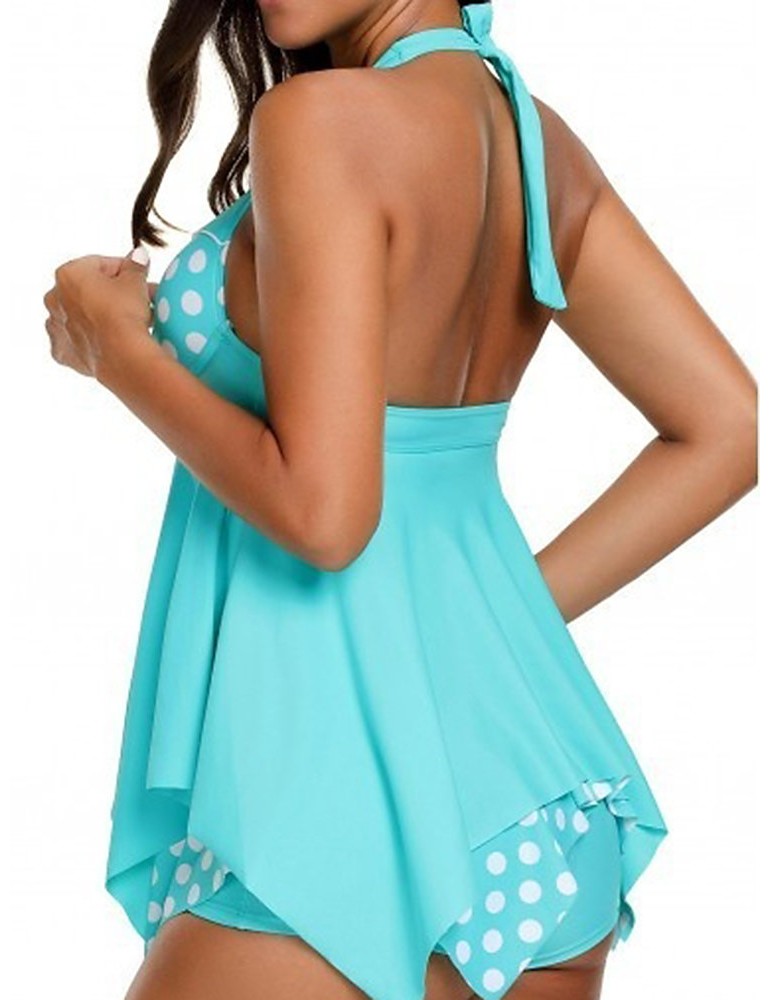 Plus Size Halter Polka Dot Irregular Backless Swimdresses For Women