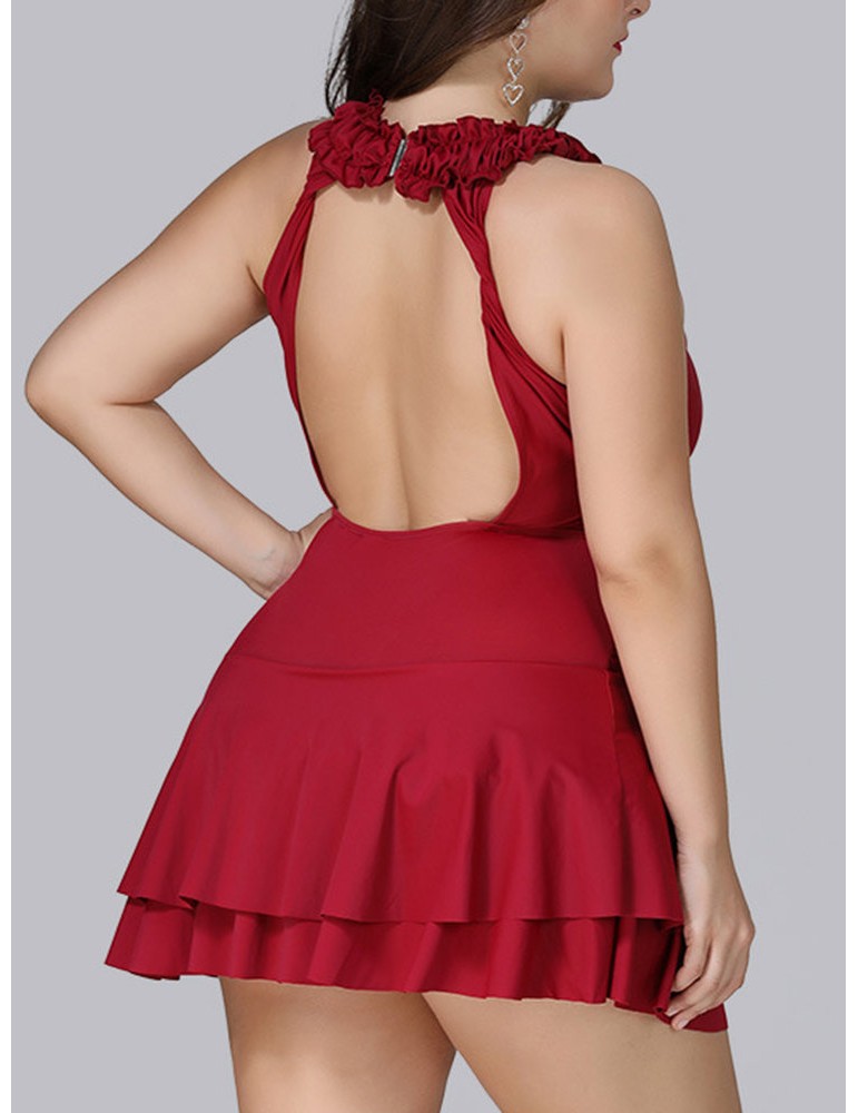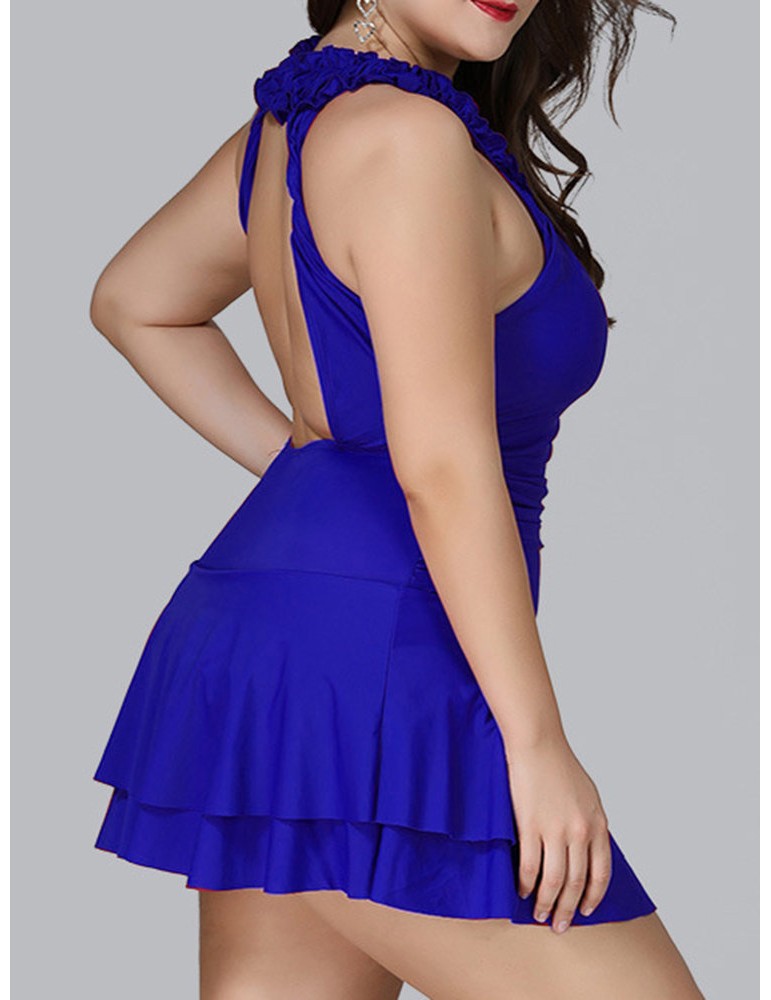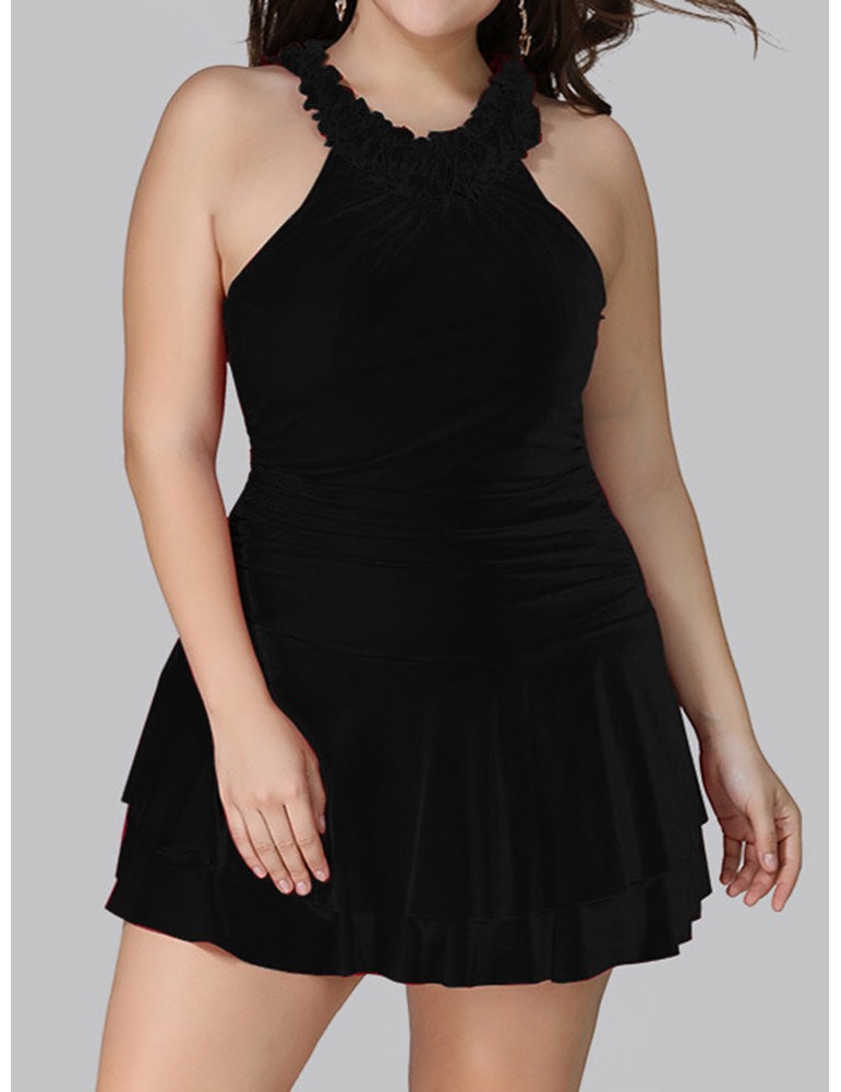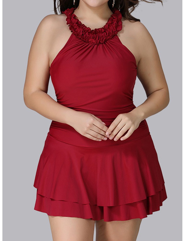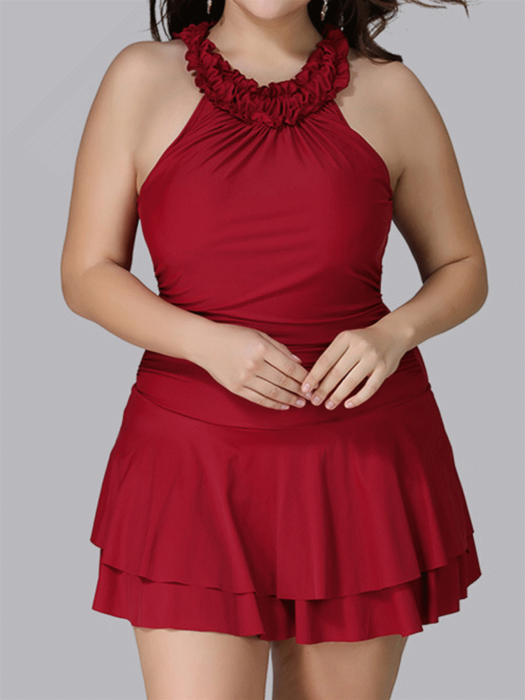 Plus Size Ruffled High Neck Backless Elegant Cupcake Swimdresses For Women