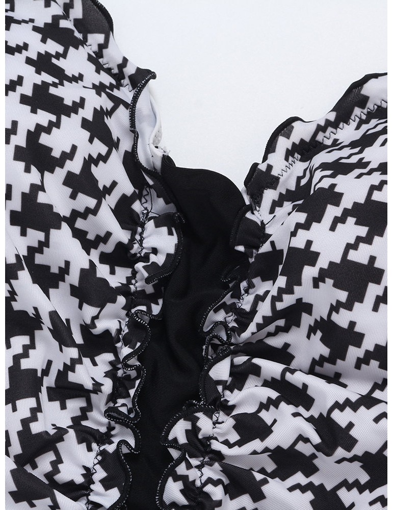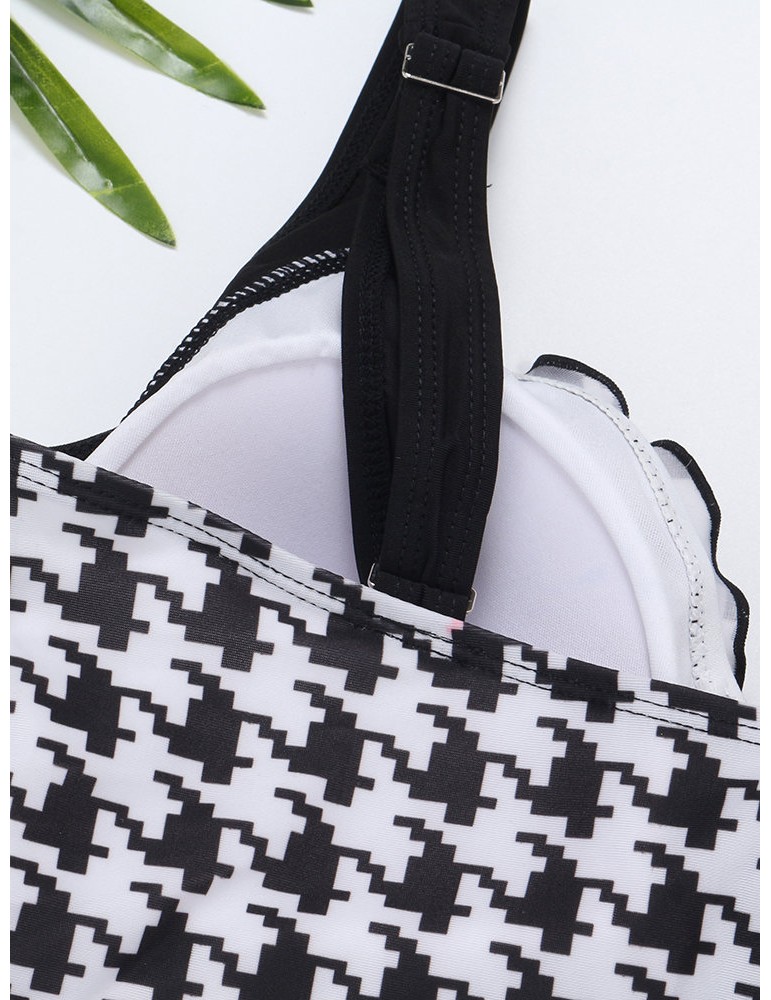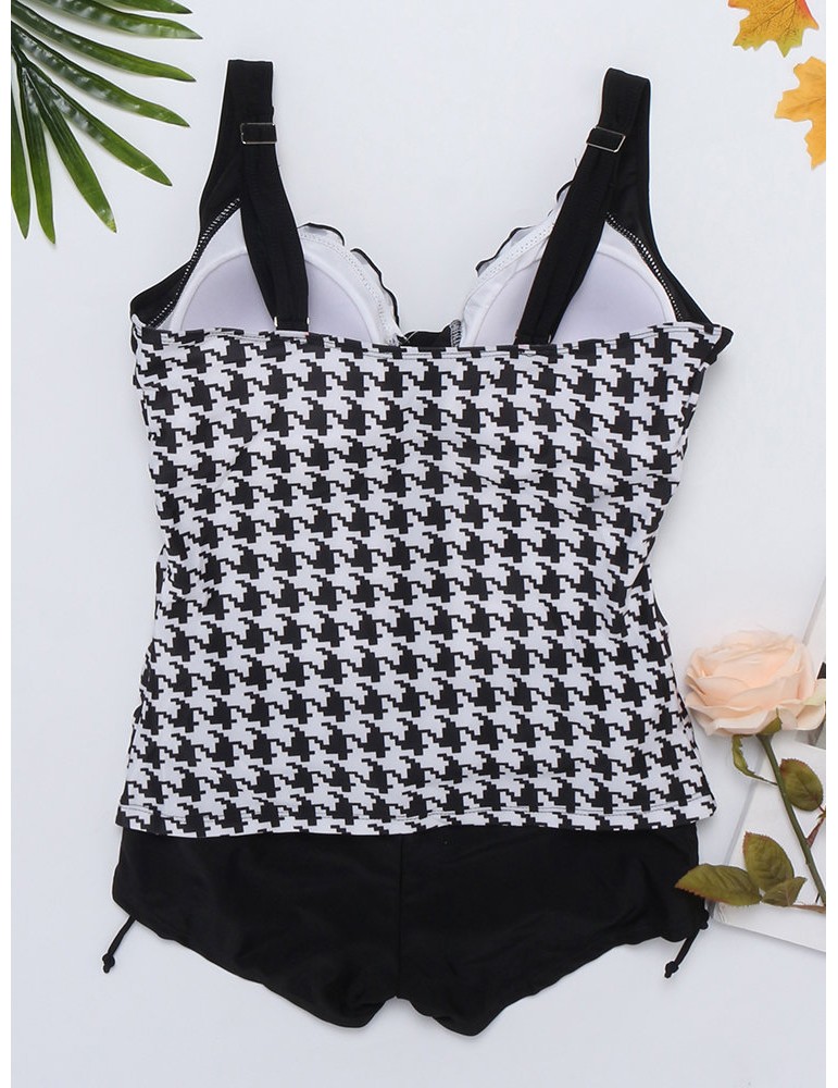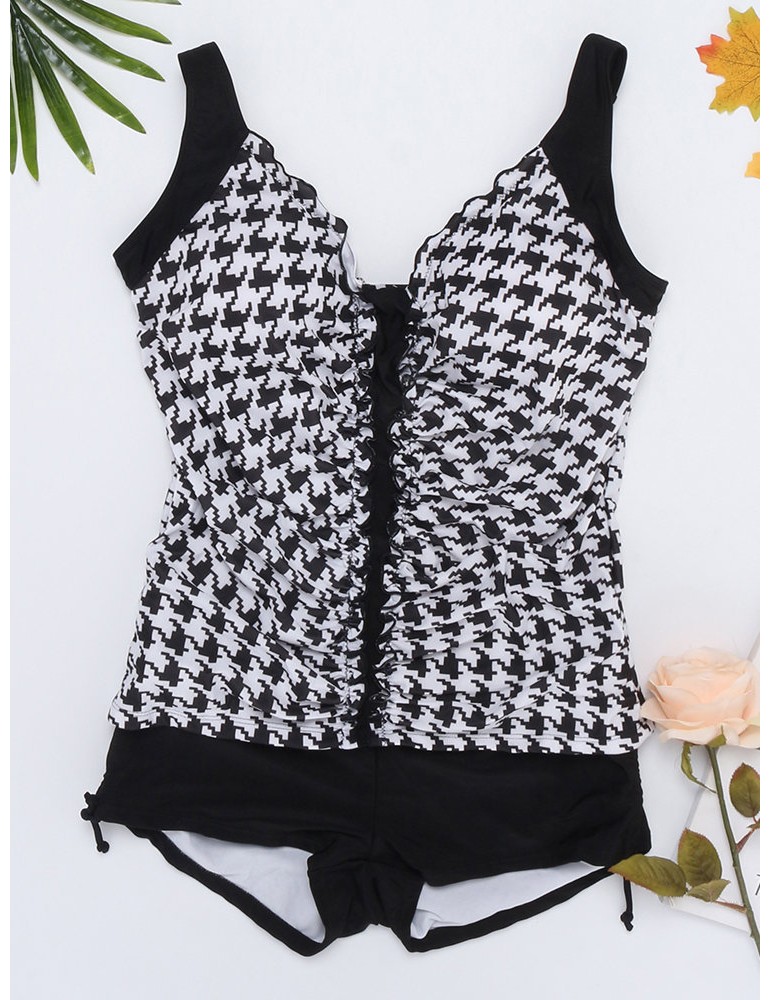 Plus Size Printed Patchwork Ruffled Vest Tankinis Swimsuits For Women