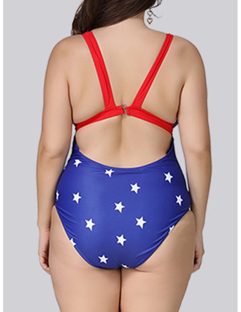 Plus Size Women Sexy Stars Printed Two-Ways Wearing Patchwork Backless Monokini Swimsuits