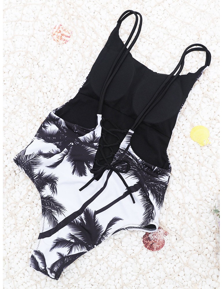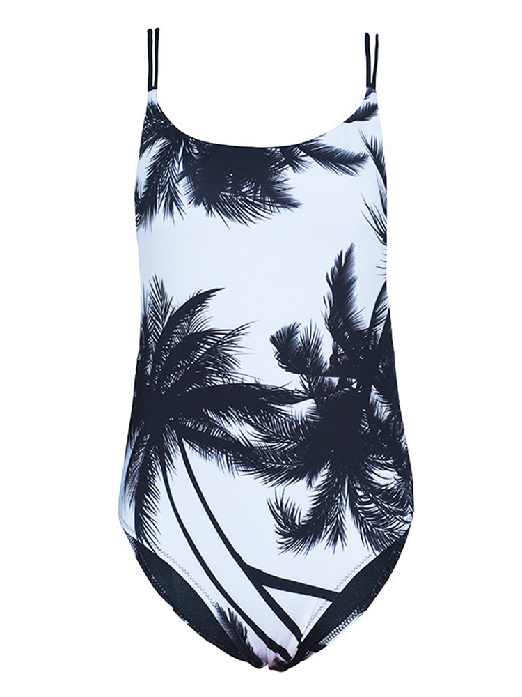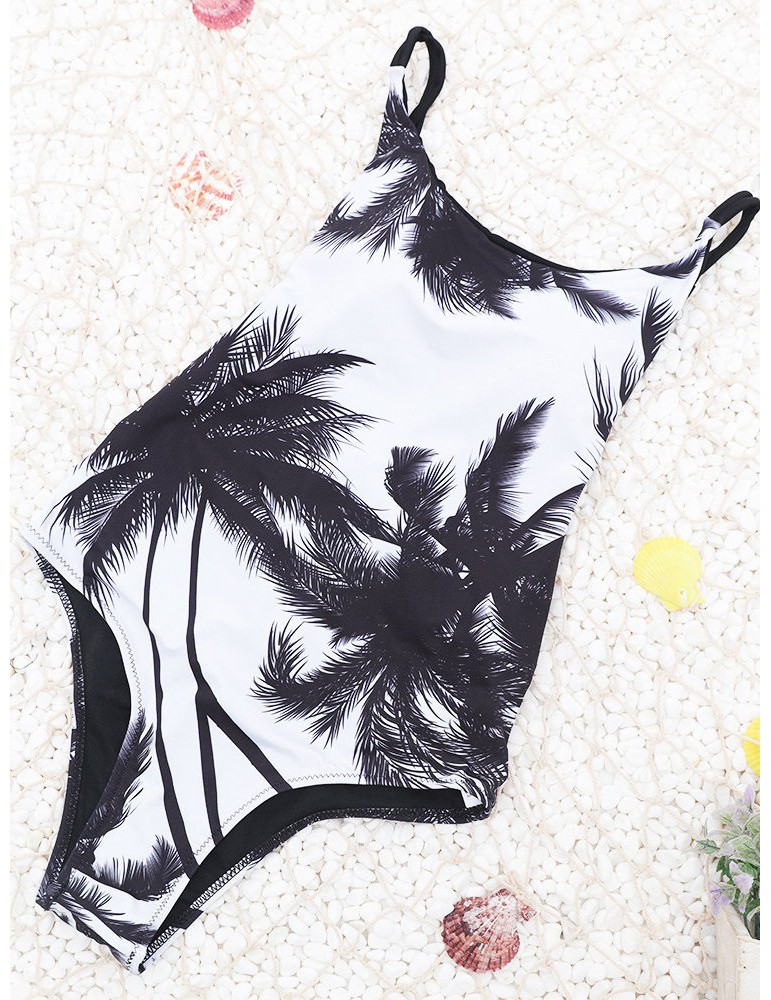 Leaves Printed Backless Sliming One Piece Swimwear For Women