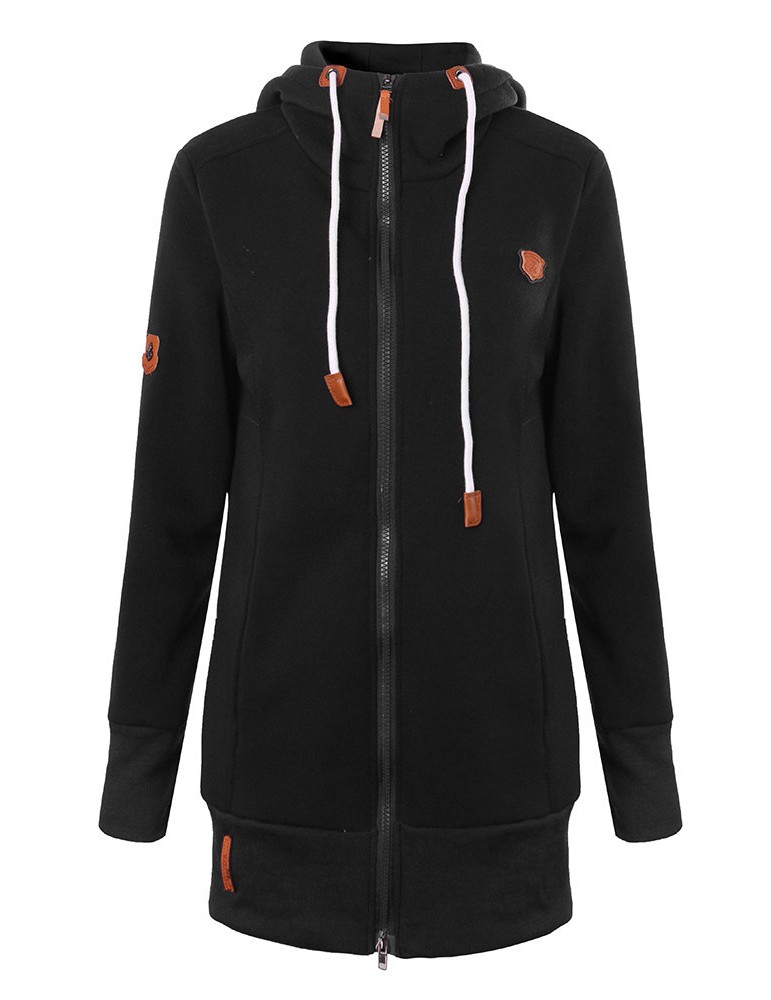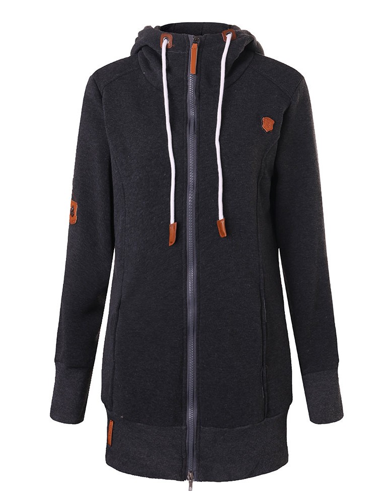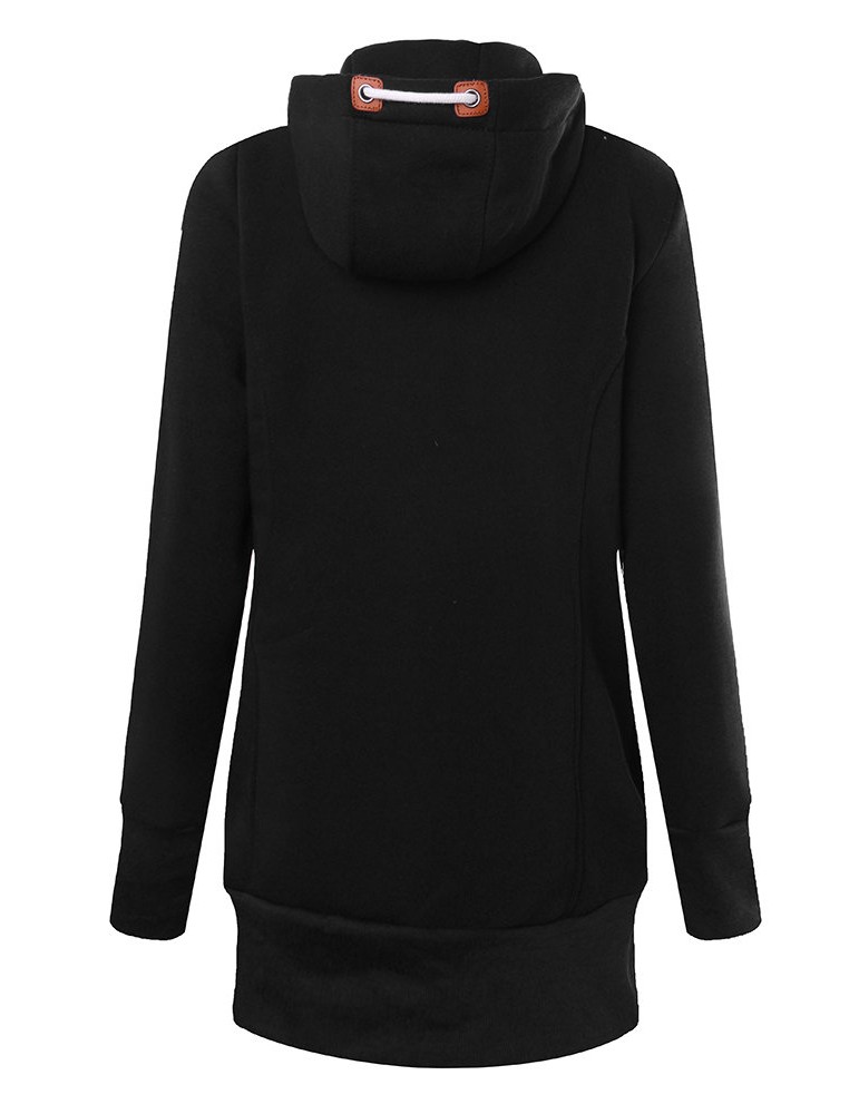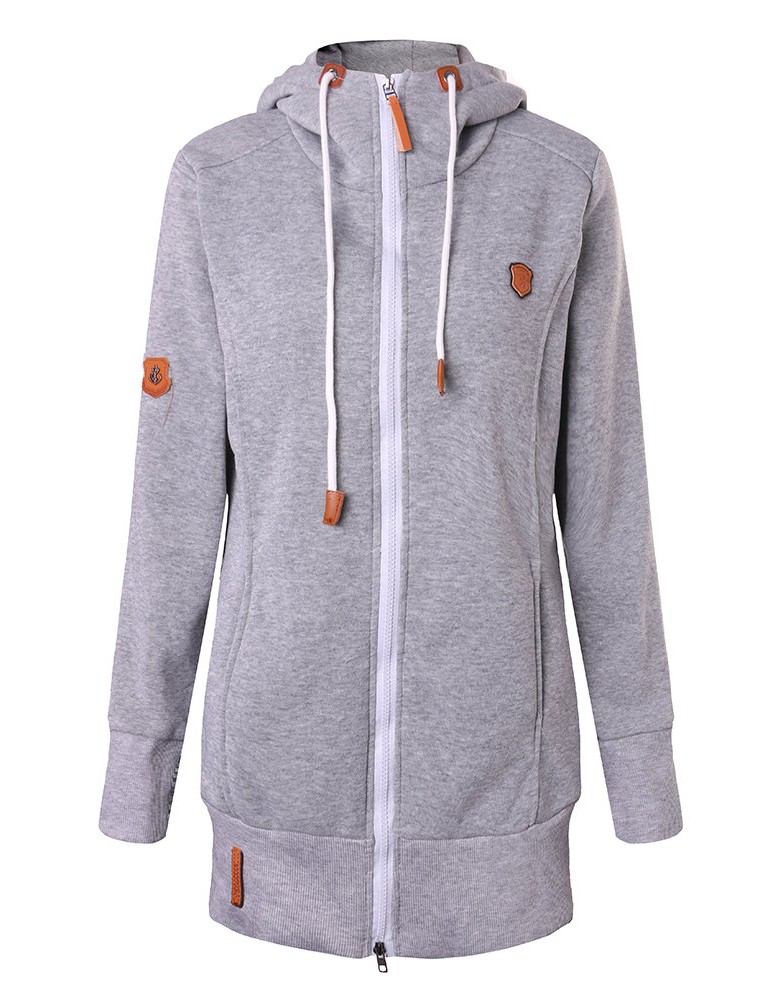 Women Long Sleeve Zipper Casual Hooded Pocket Sweatshirt Coats
