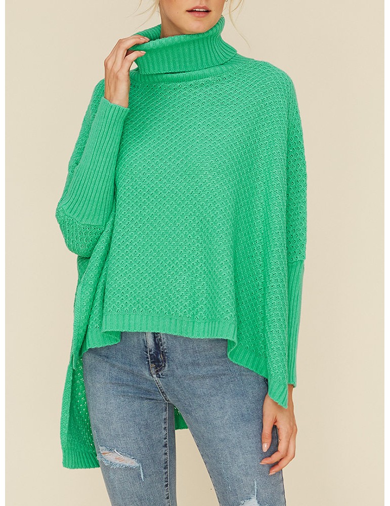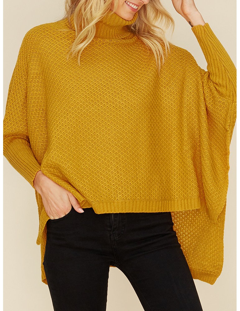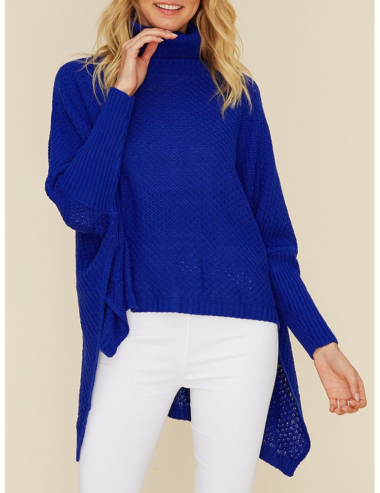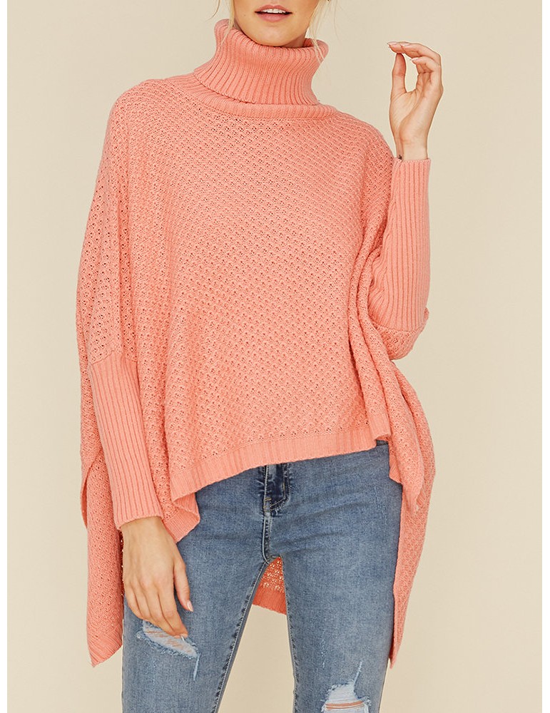 Chic Solid Color Loose Asymmetrical Turtleneck Sweater