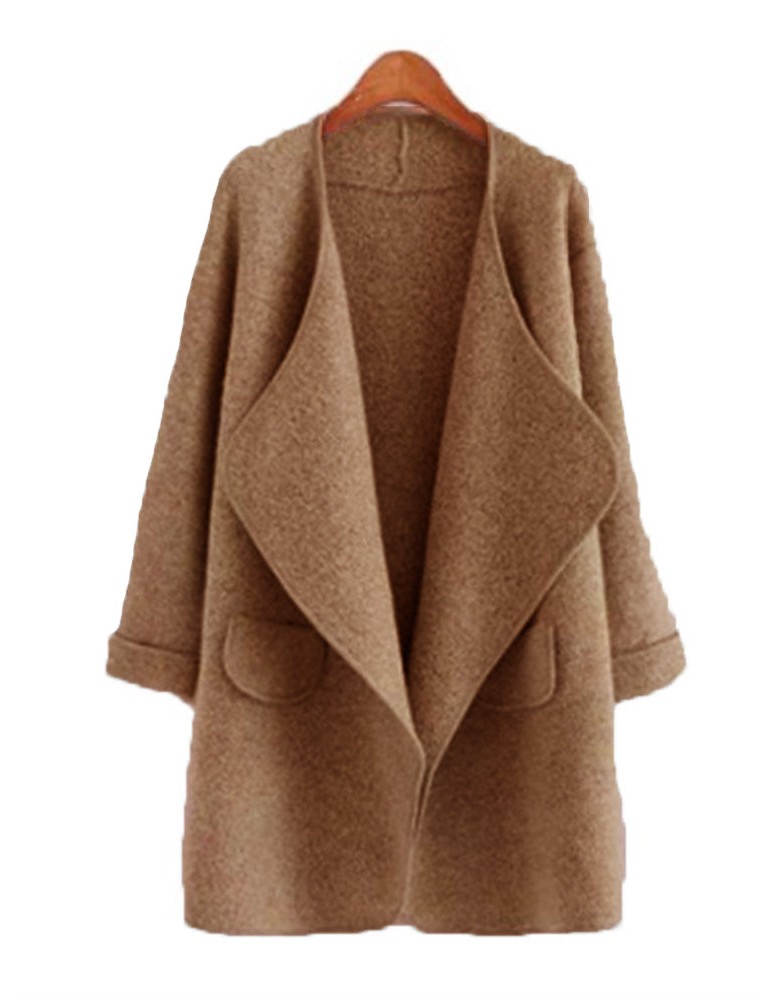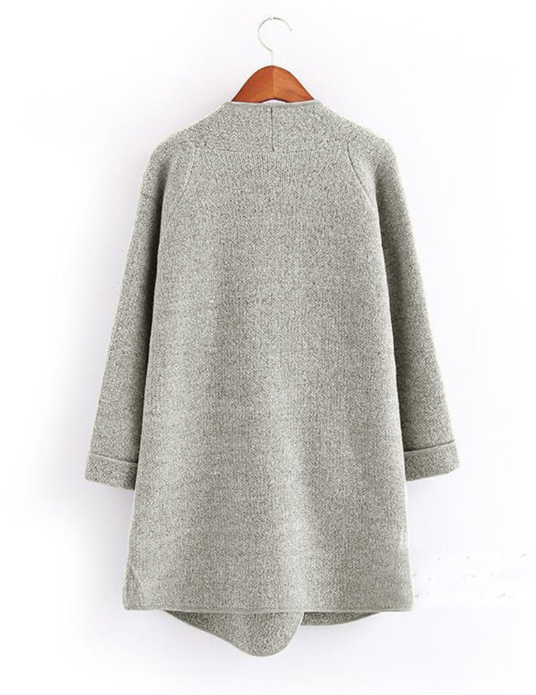 Loose Open Front Solid Color Autumn Winter Knit Long Sweater