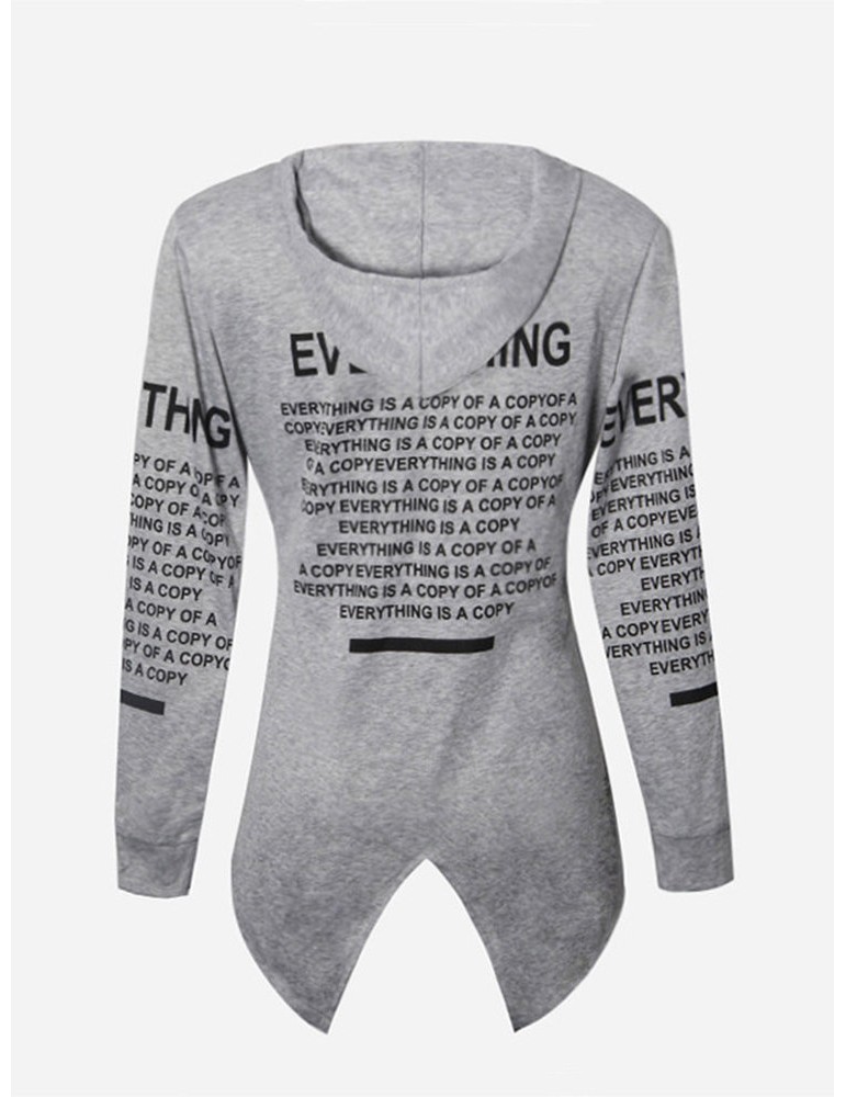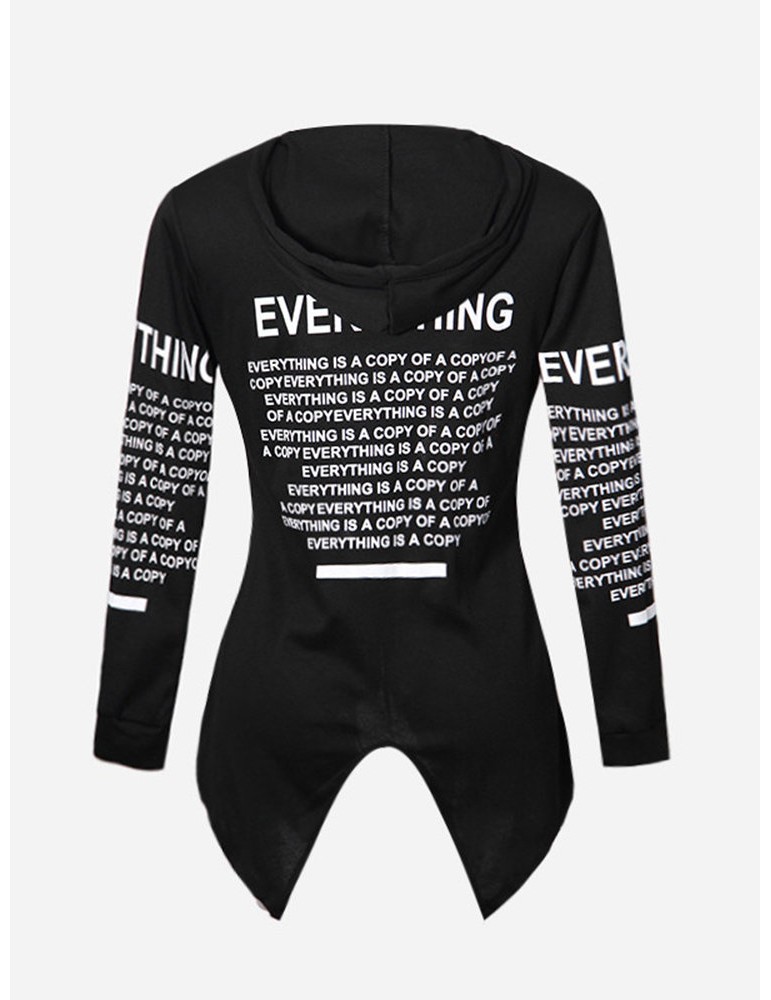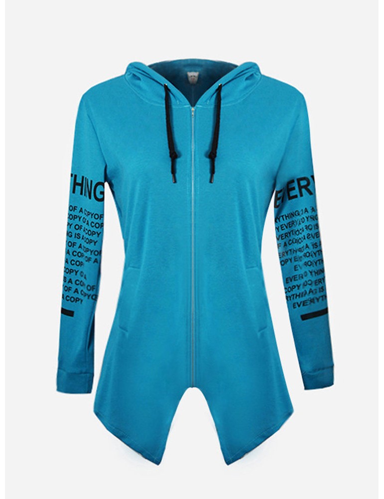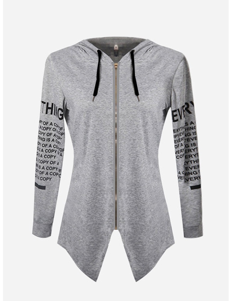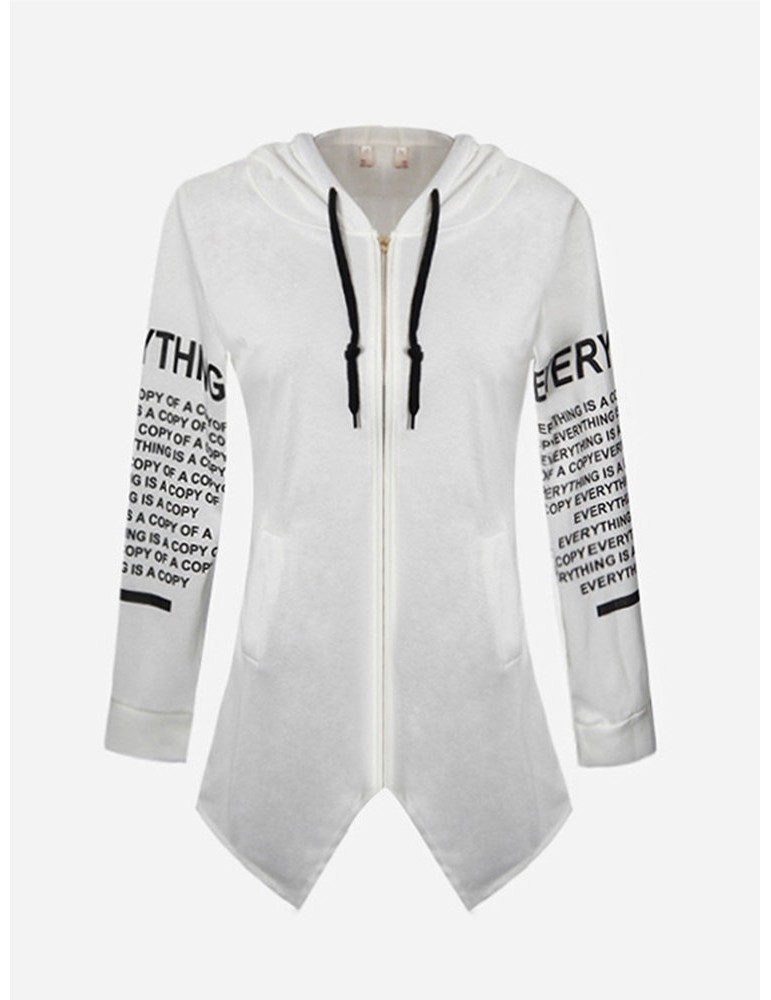 Women Letter Printed Irregular Hem Hooded Thin Sweatshirt Coats