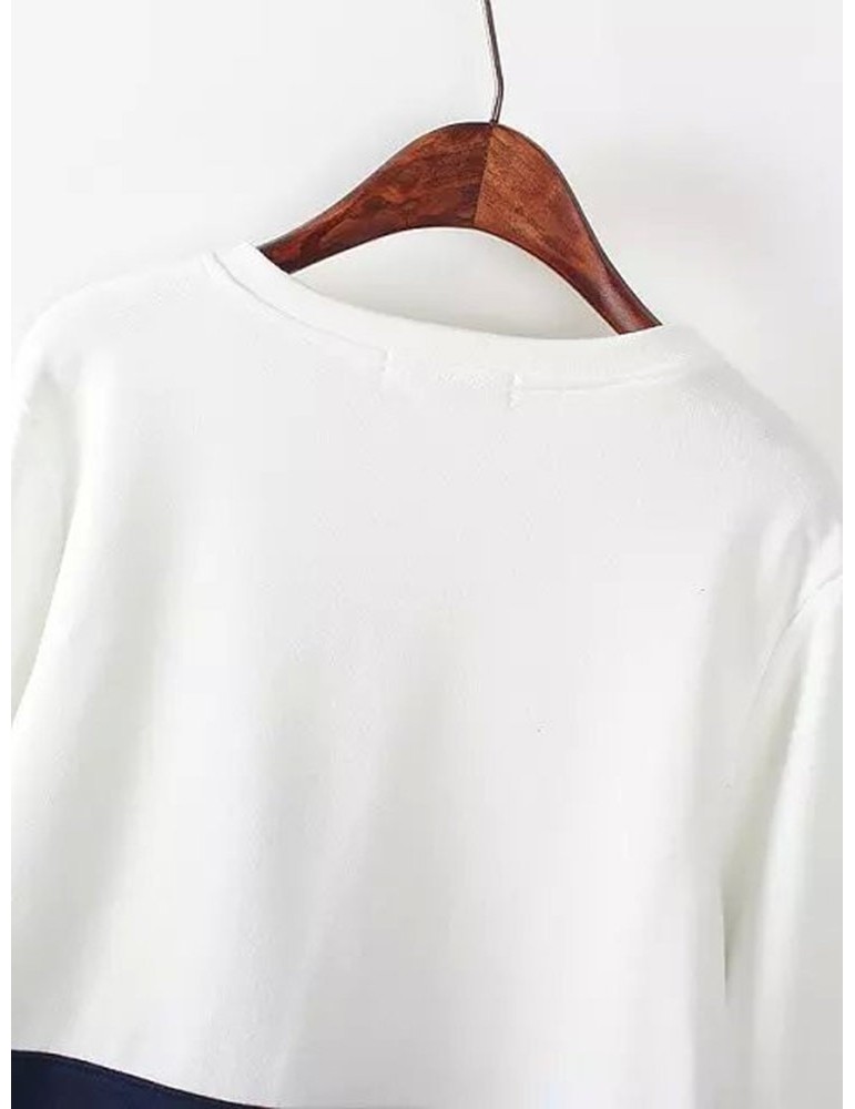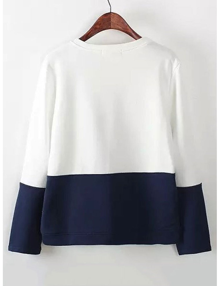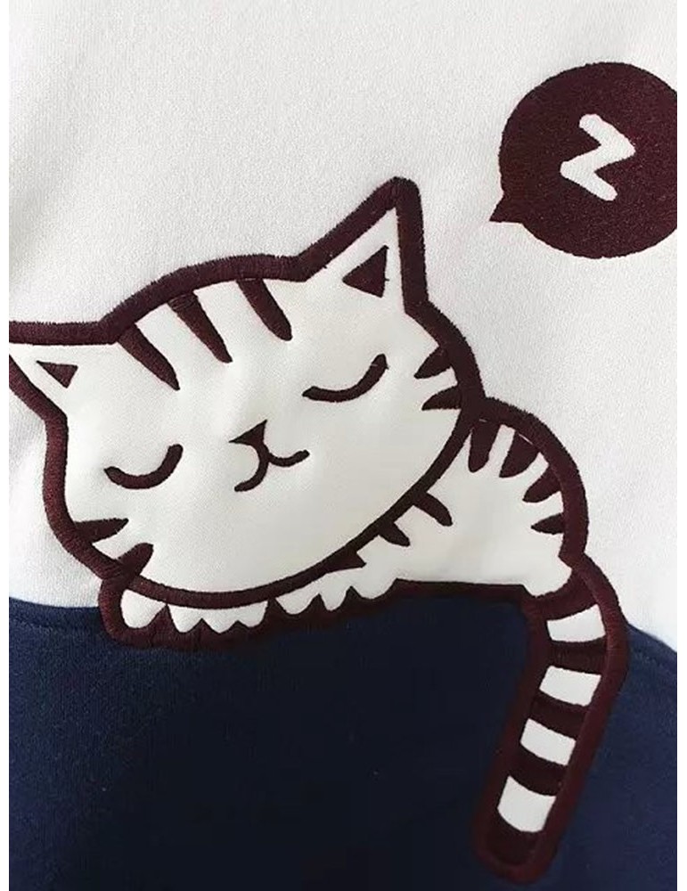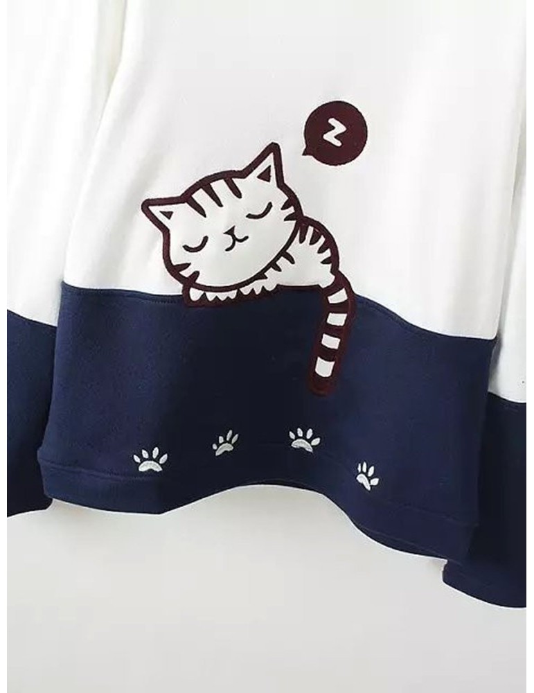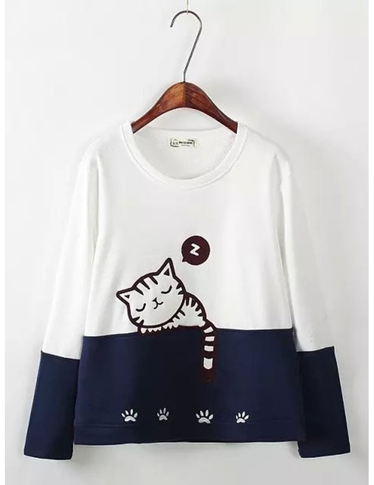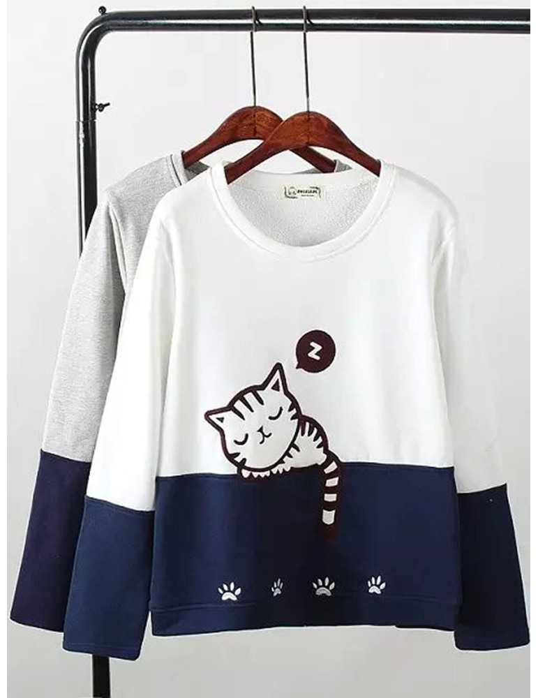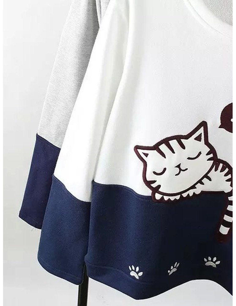 Women Cats Printed Contrast Color O-Neck Pullover Sweatshirts
