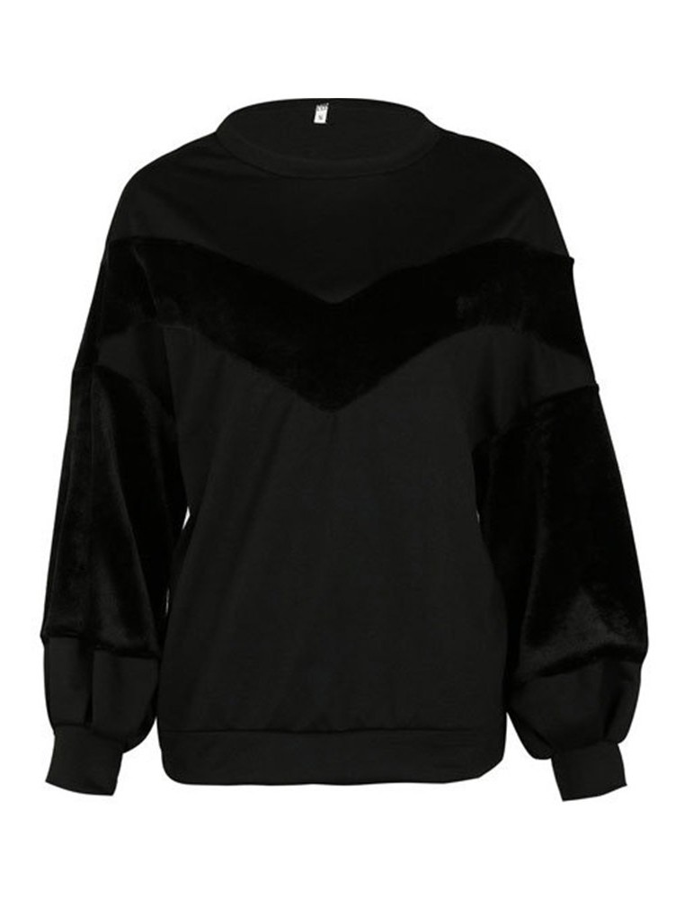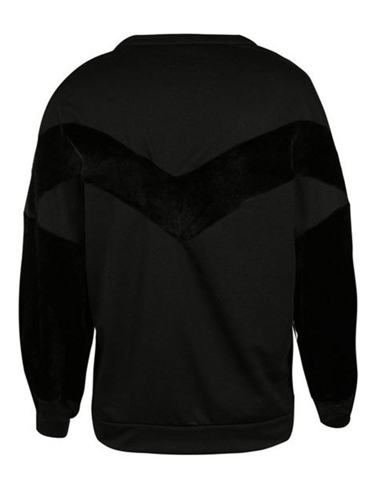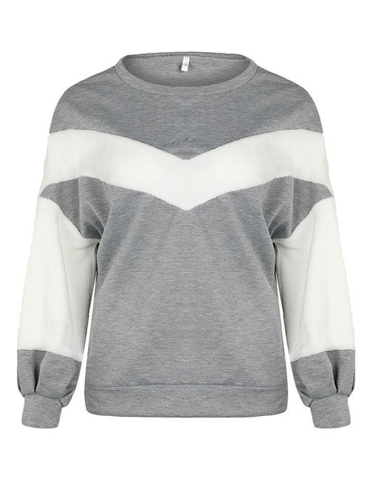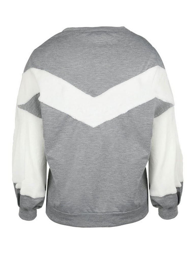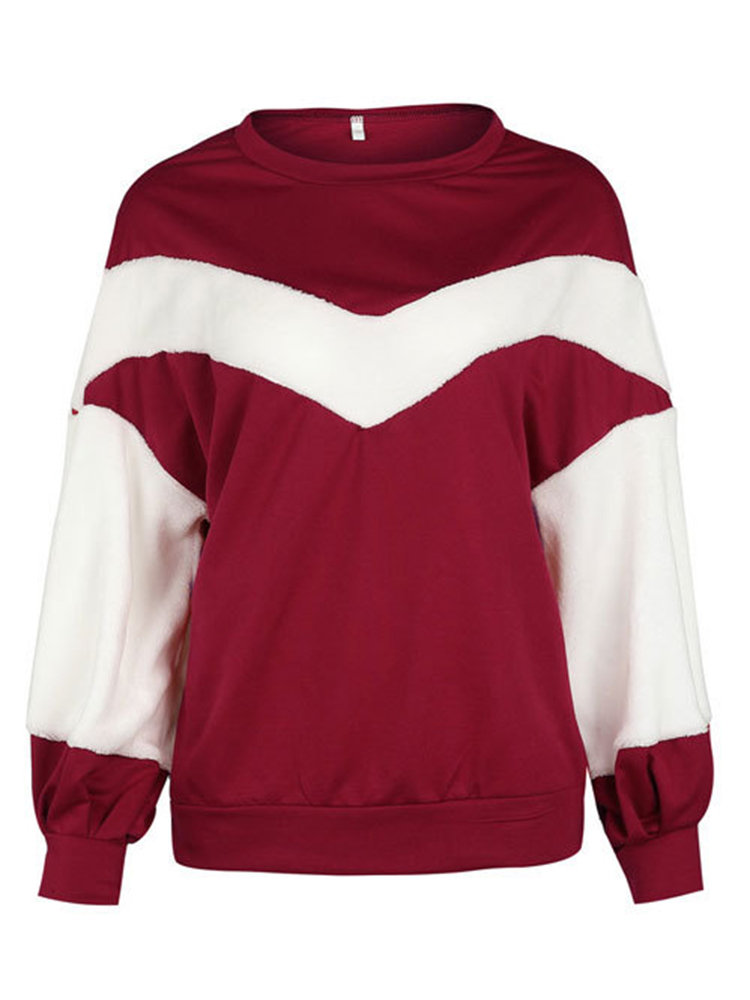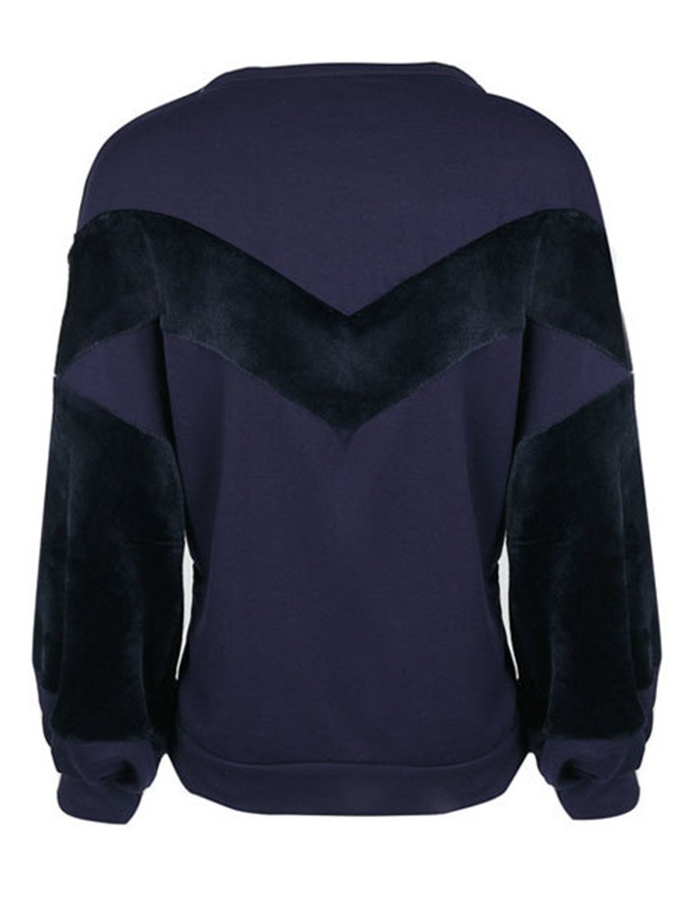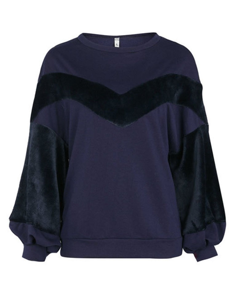 Casual Loose Velvet Patchwork O-Neck Long Sleeve Women Hoodies