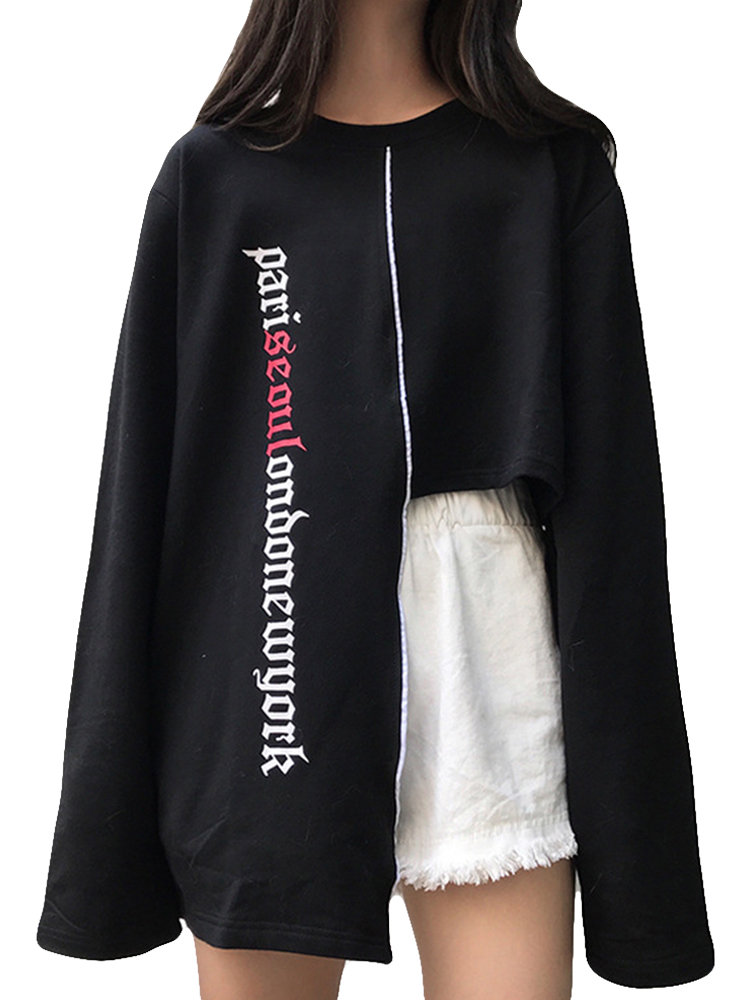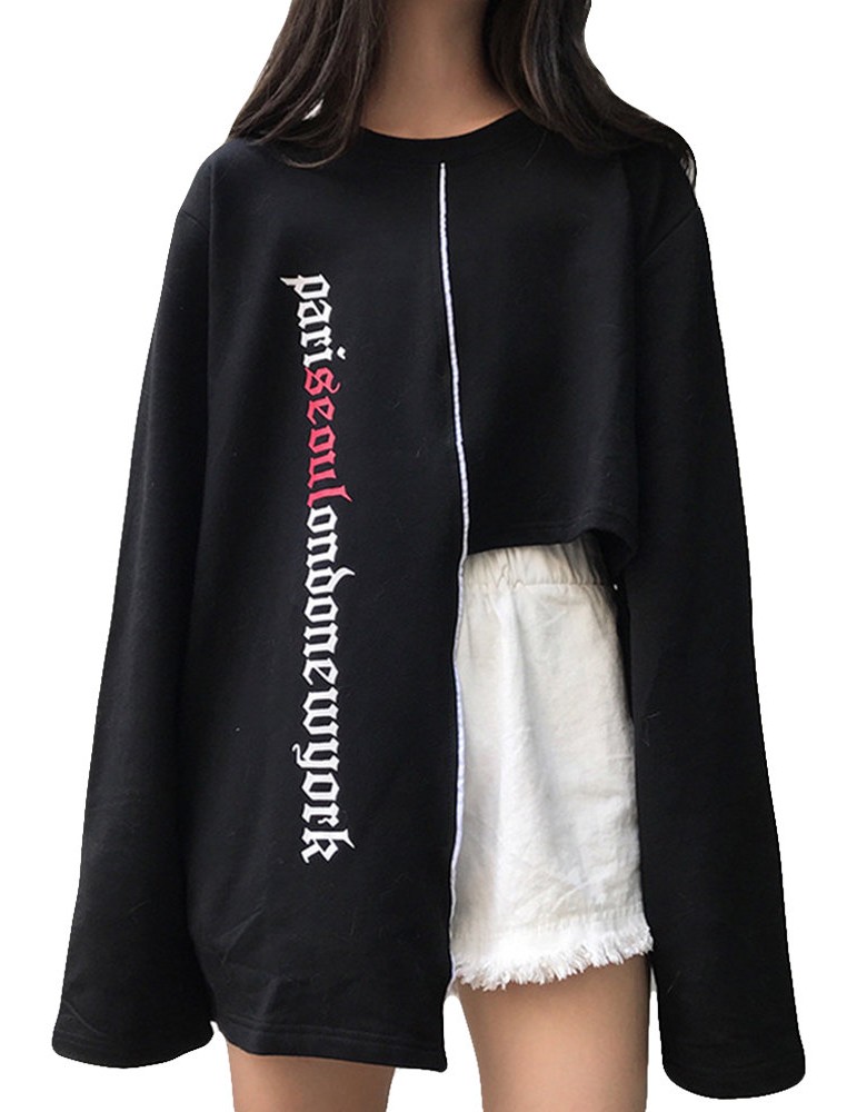 Irregular Letters Printed Long Sleeve Sweatshirt