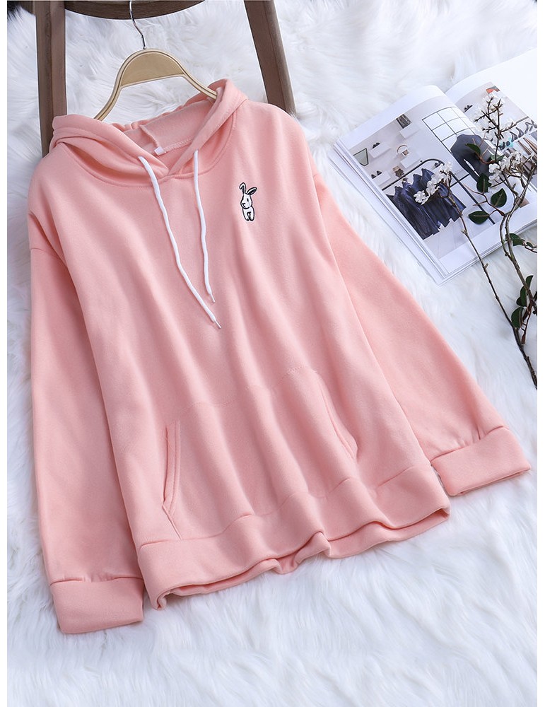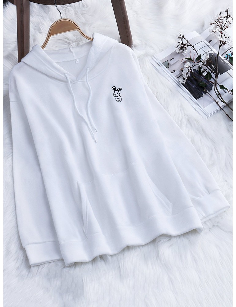 Rabbit Ears Hooded Embroidery Casual Sweatshirts