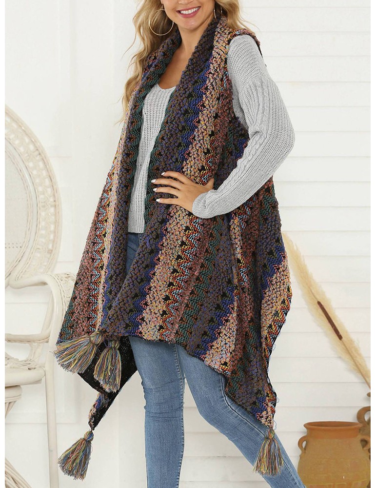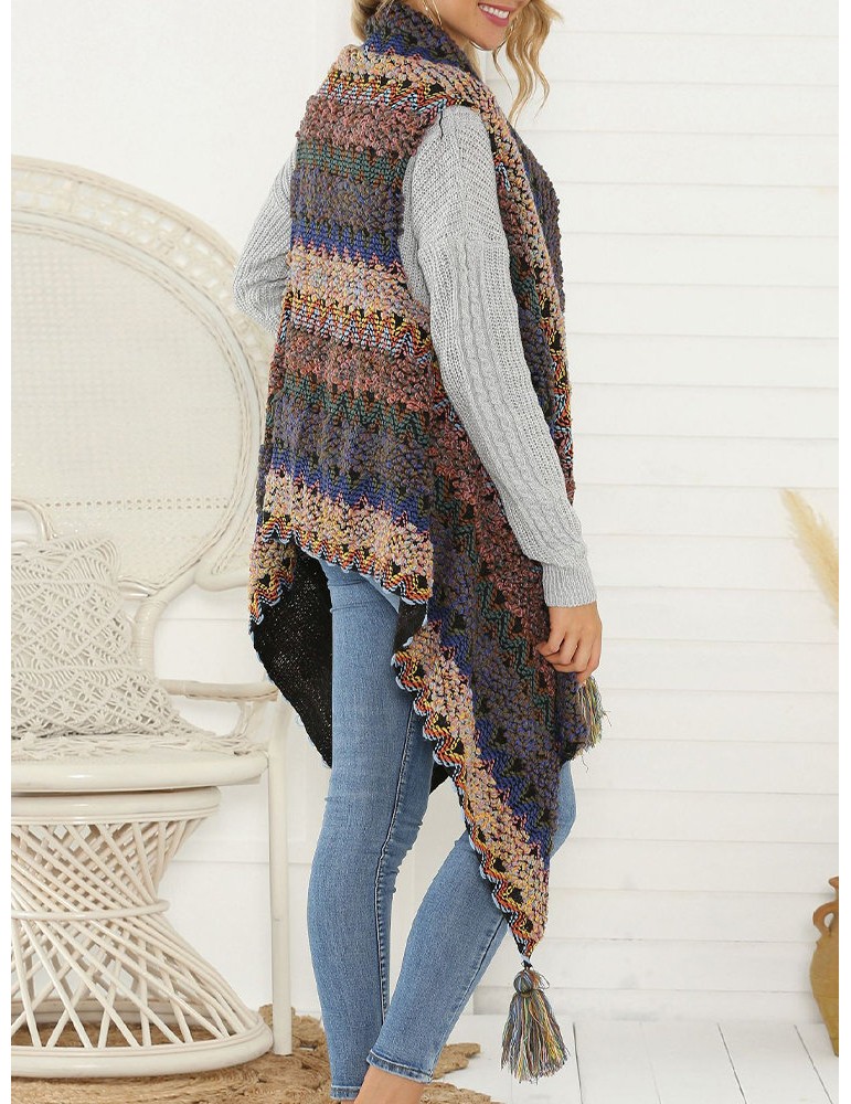 Tassels Multicolor Irregular Sleeveless Cardigan For Women