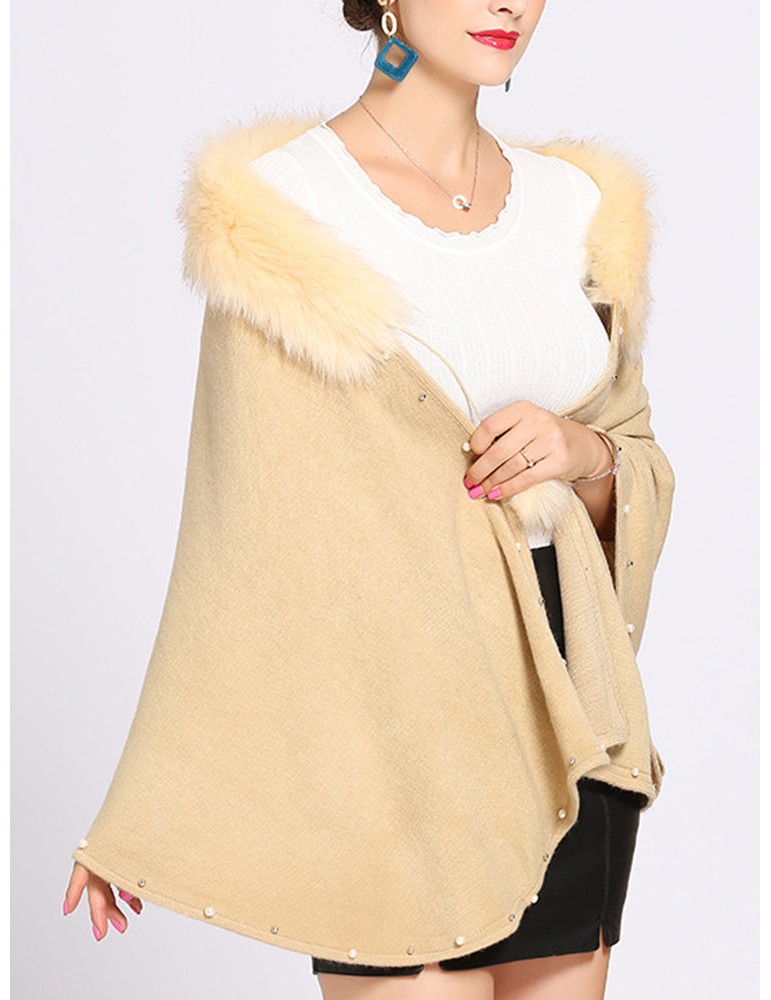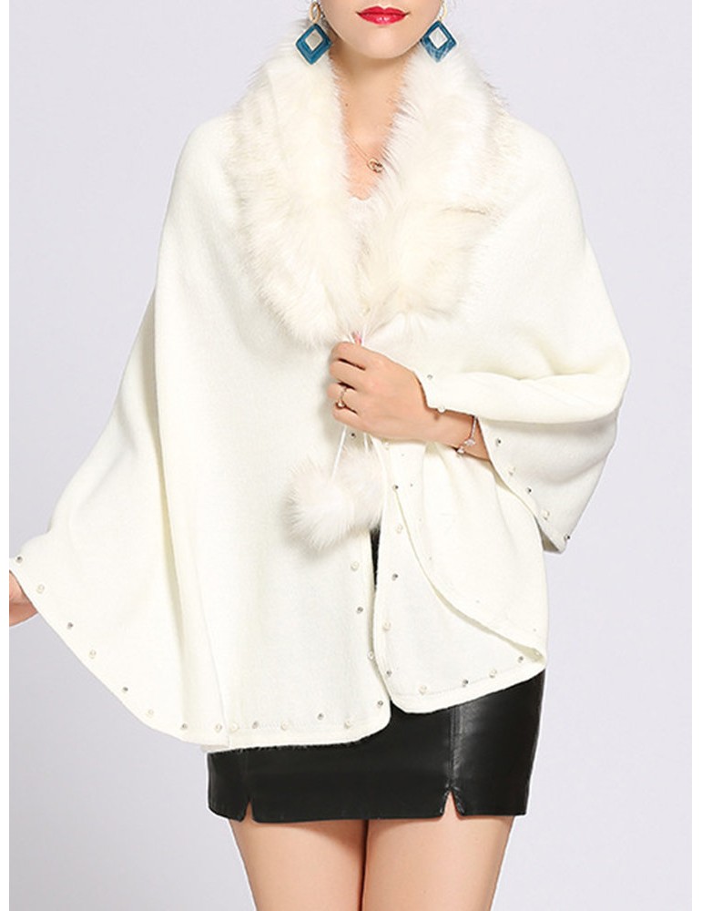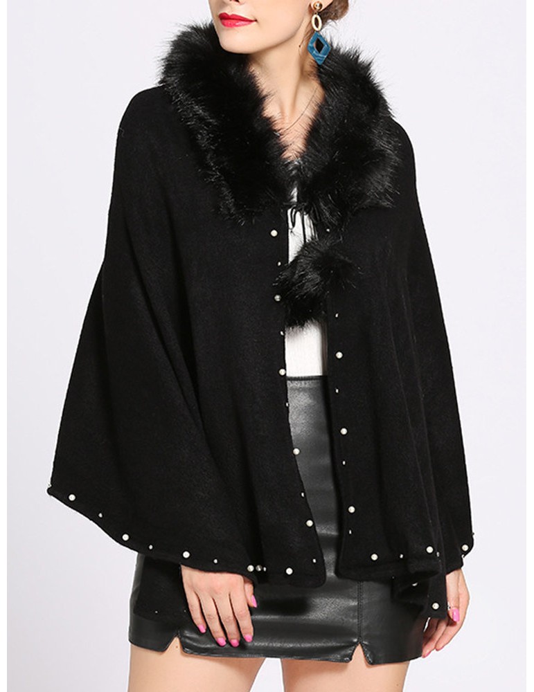 Women Casual Solid Color Fur Collar Cloak Coats