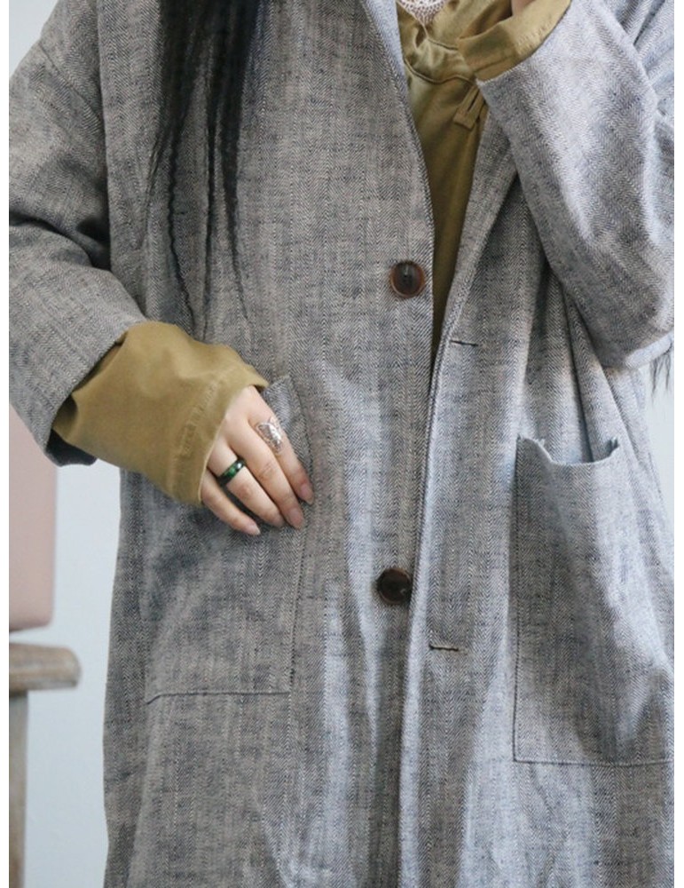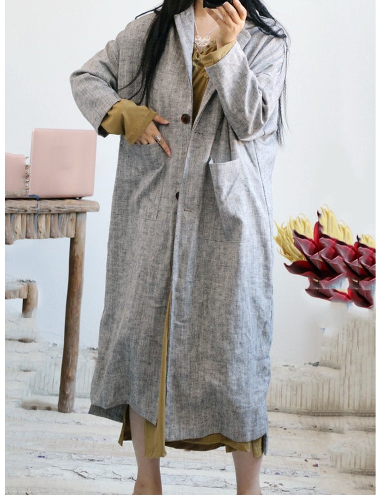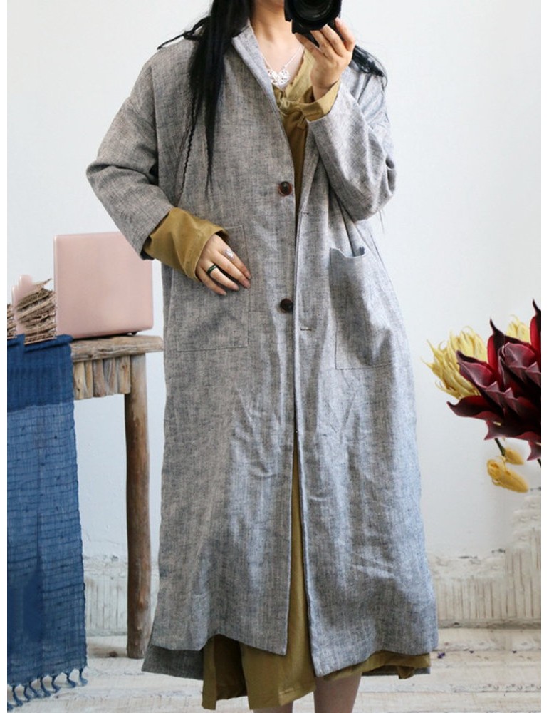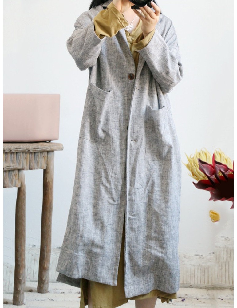 Vintage Pockets Solid Color Cotton Linen Coat