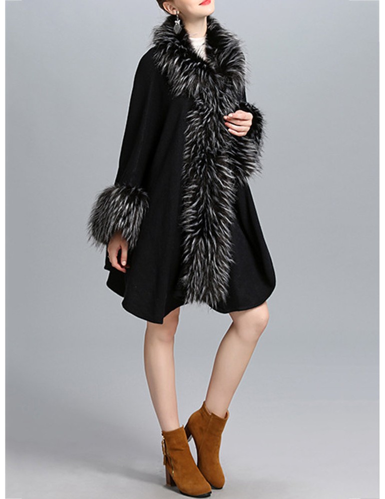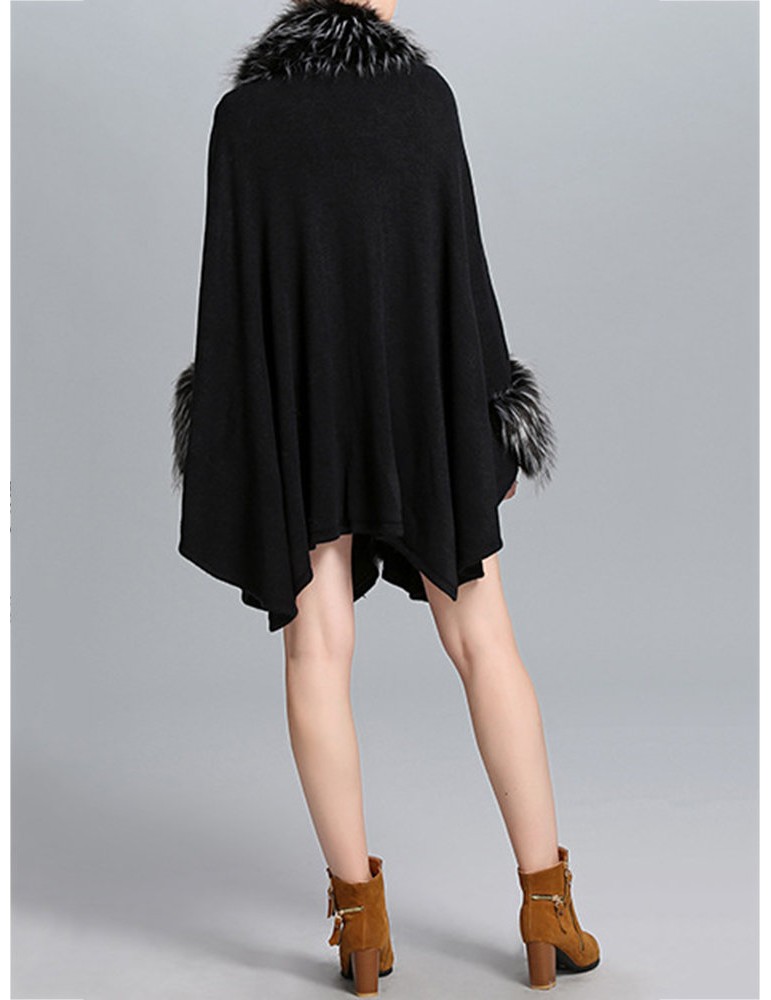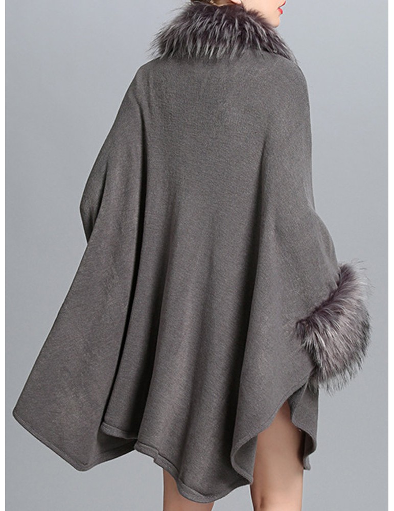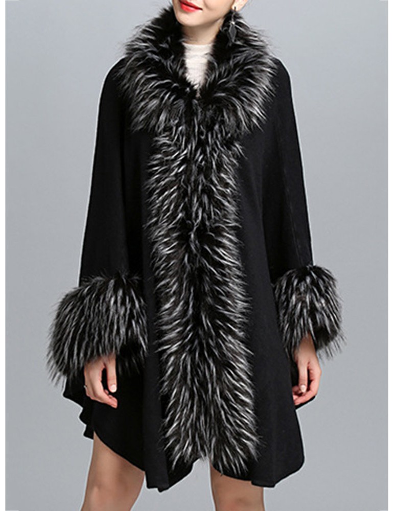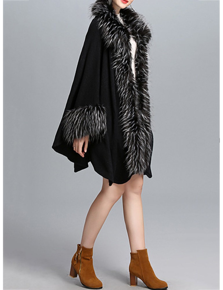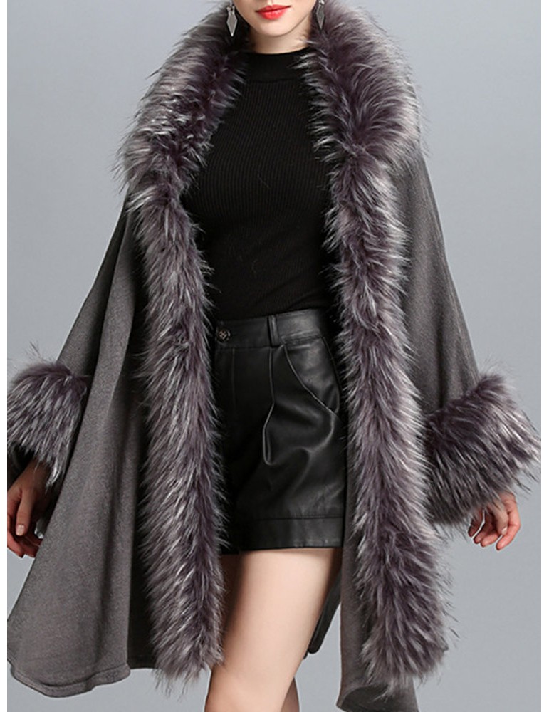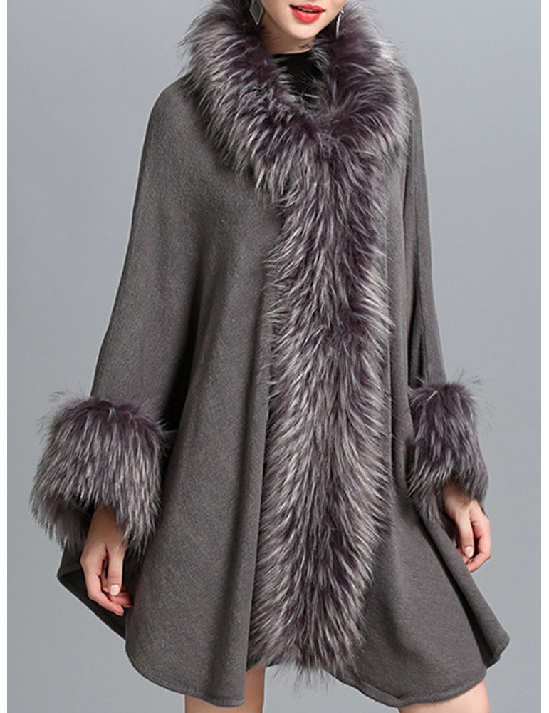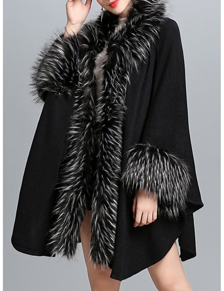 Elegant Knitting Faux Fur Patchwork Irregular Women Cloak Coats