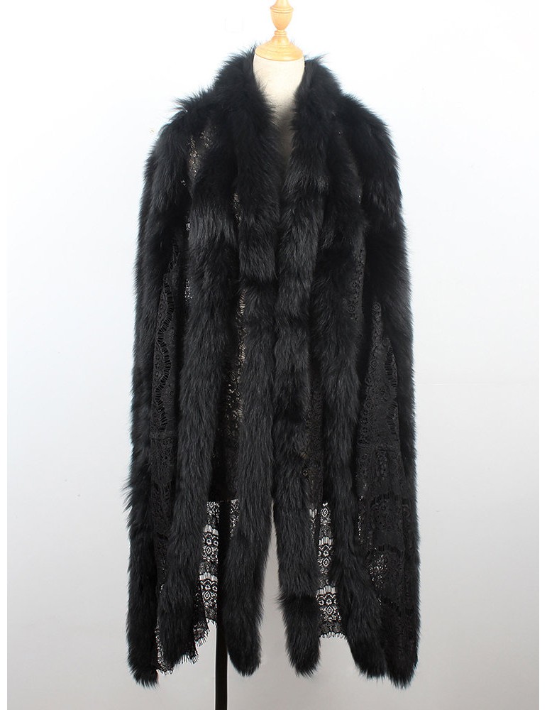 Faux Fur Solid Color Autumn Winter Lace Shawl Coat