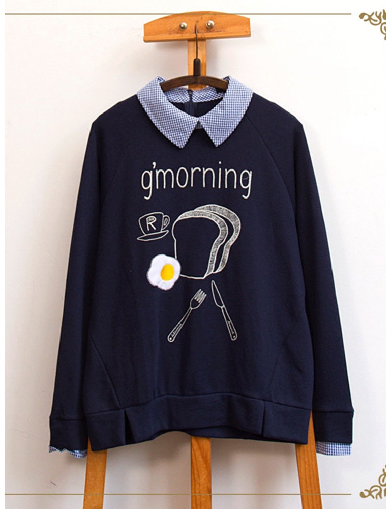 Printed Turn-down Collar Long Sleeve Sweatshirts
