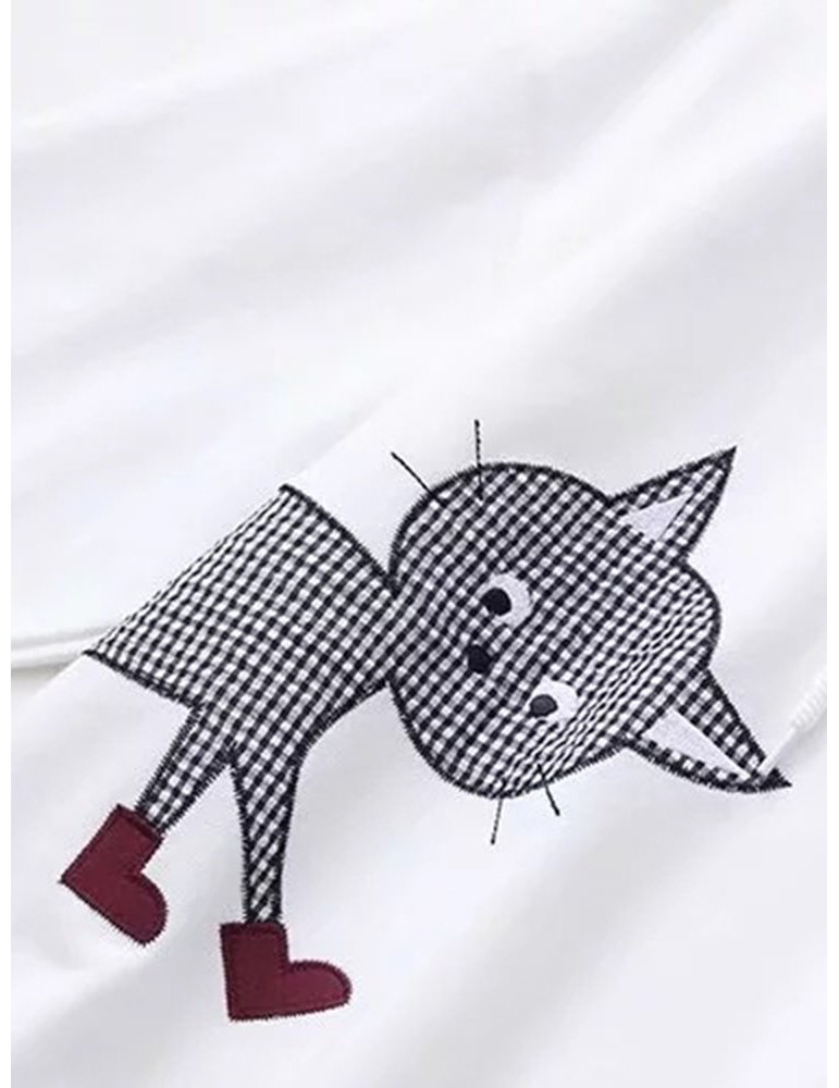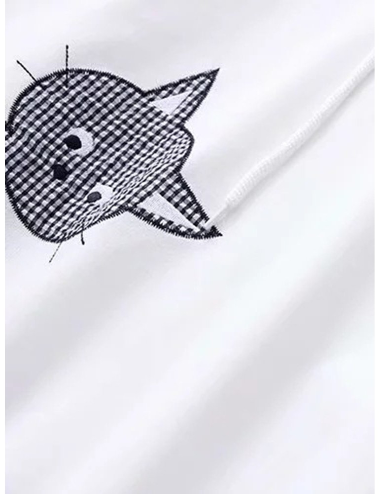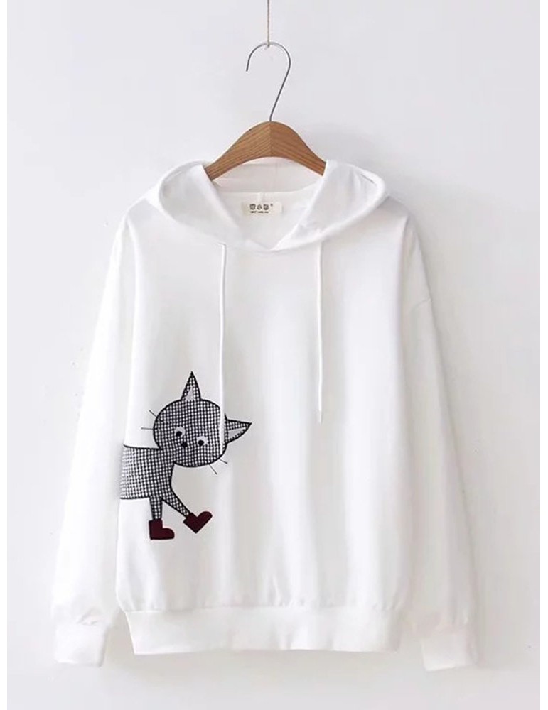 Embroidery Cat Hooded Long Sleeve Sweatshirts