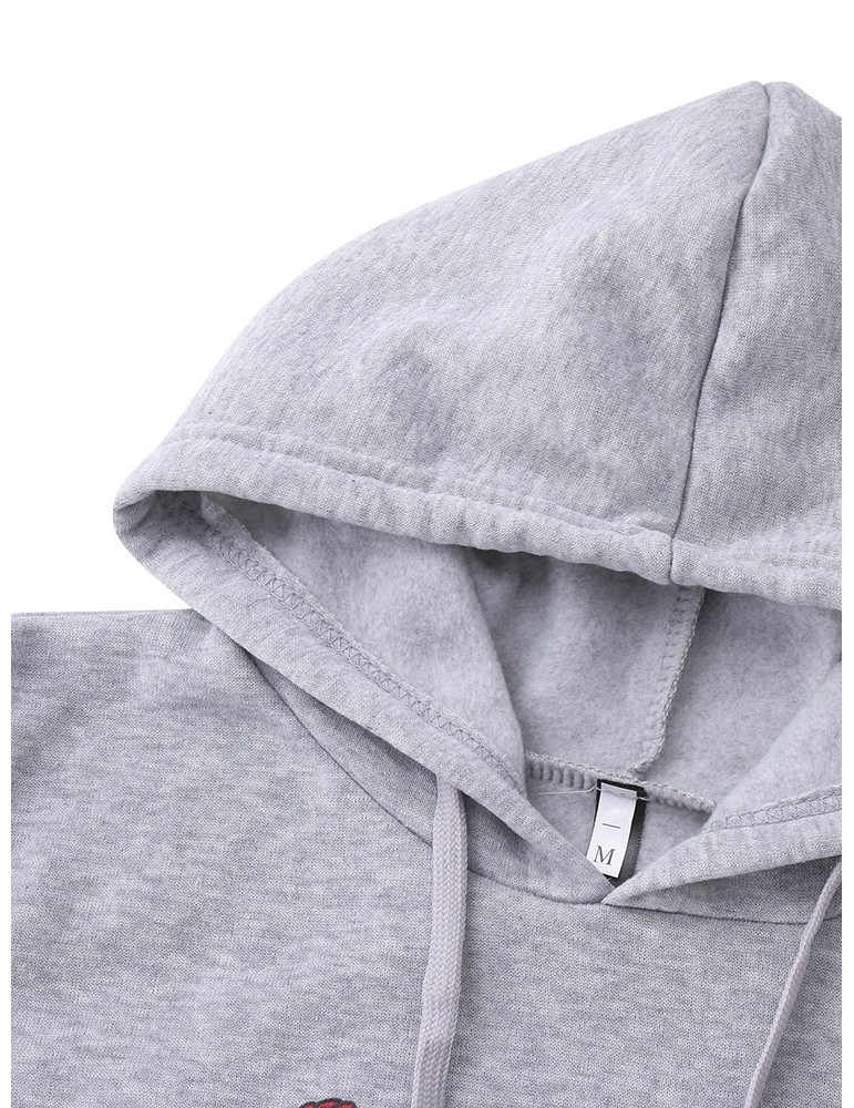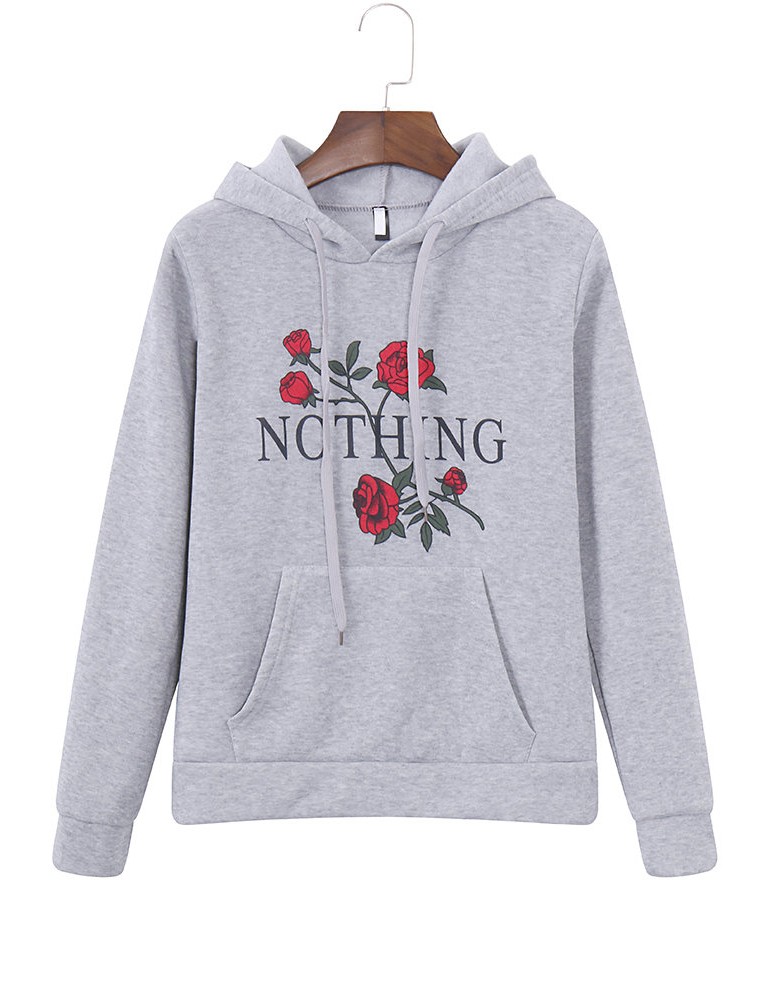 Casual Loose Flower Letters Printed Women Hoodies