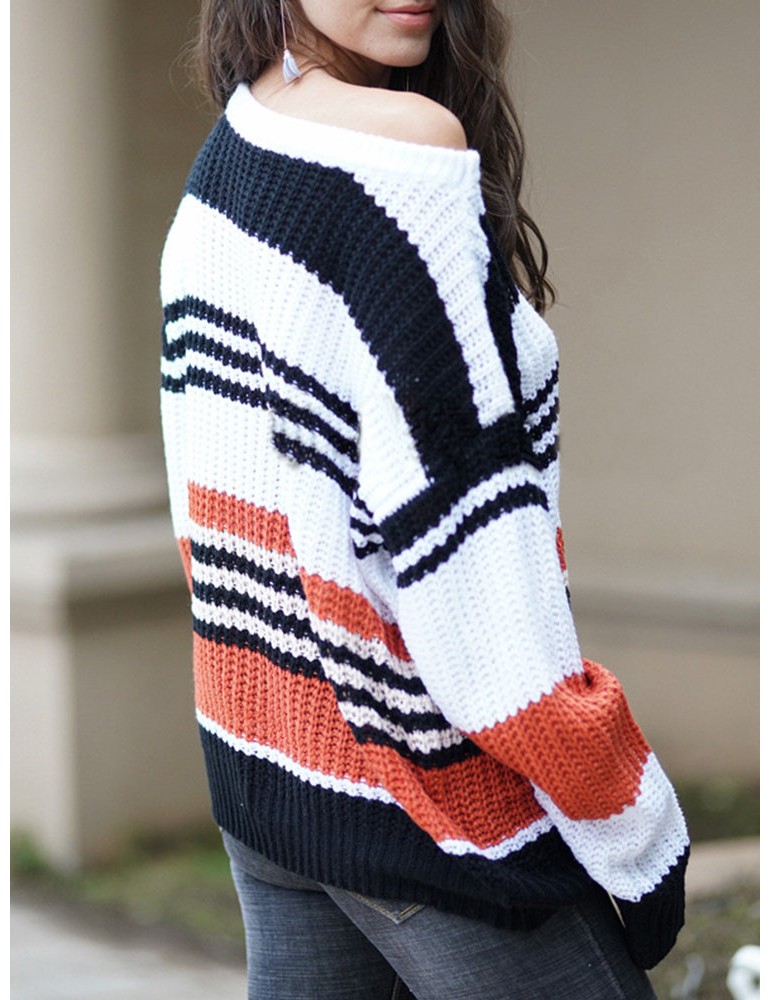 Chic Striped Long Sleeve Loose Sweater
