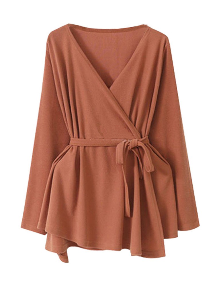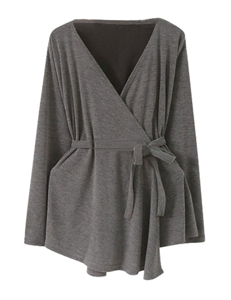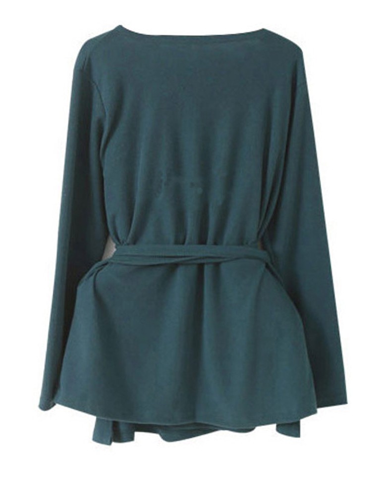 Elegant Women V-Neck Long Sleeve Cardigans With Belt