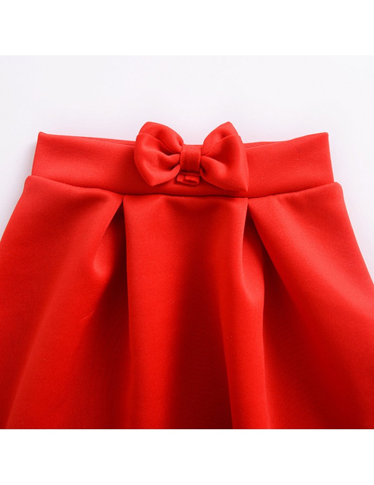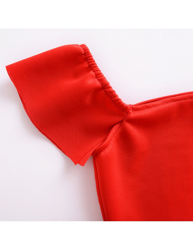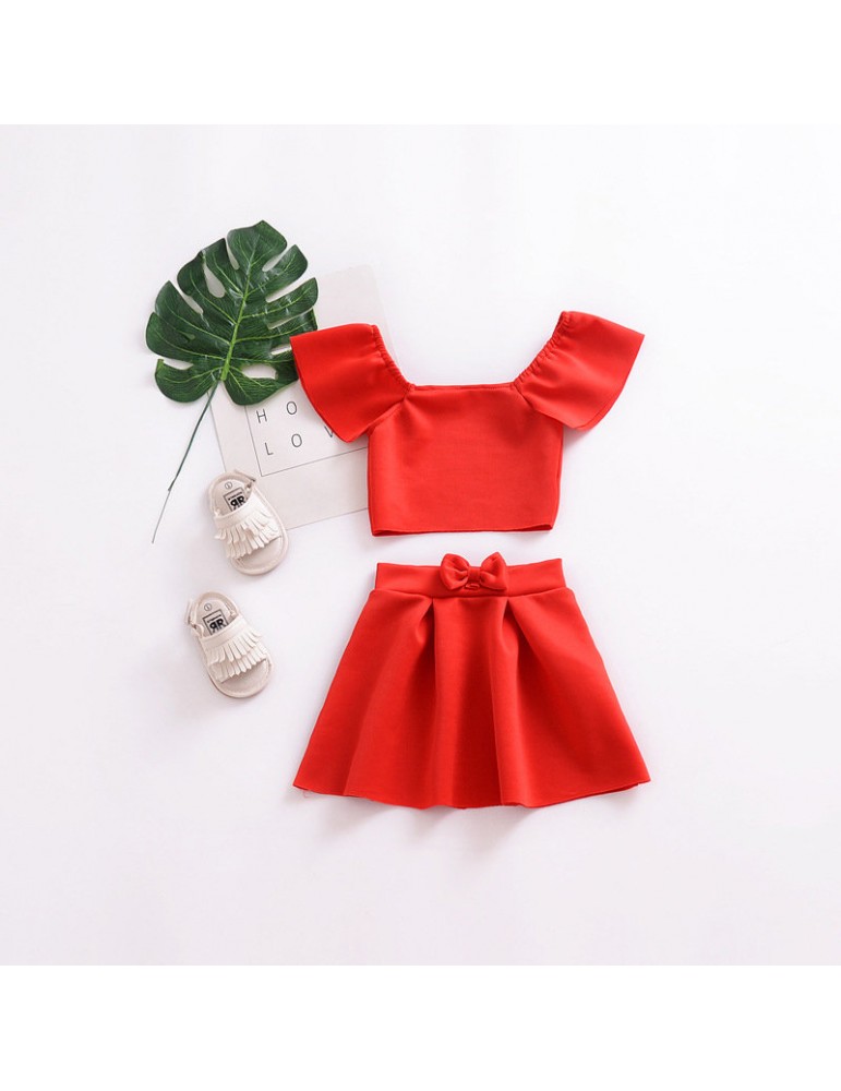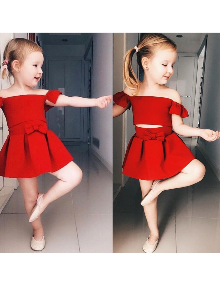 2Pcs Red Off Shoulder Girls Summer Skirt Set For 1Y-5Y