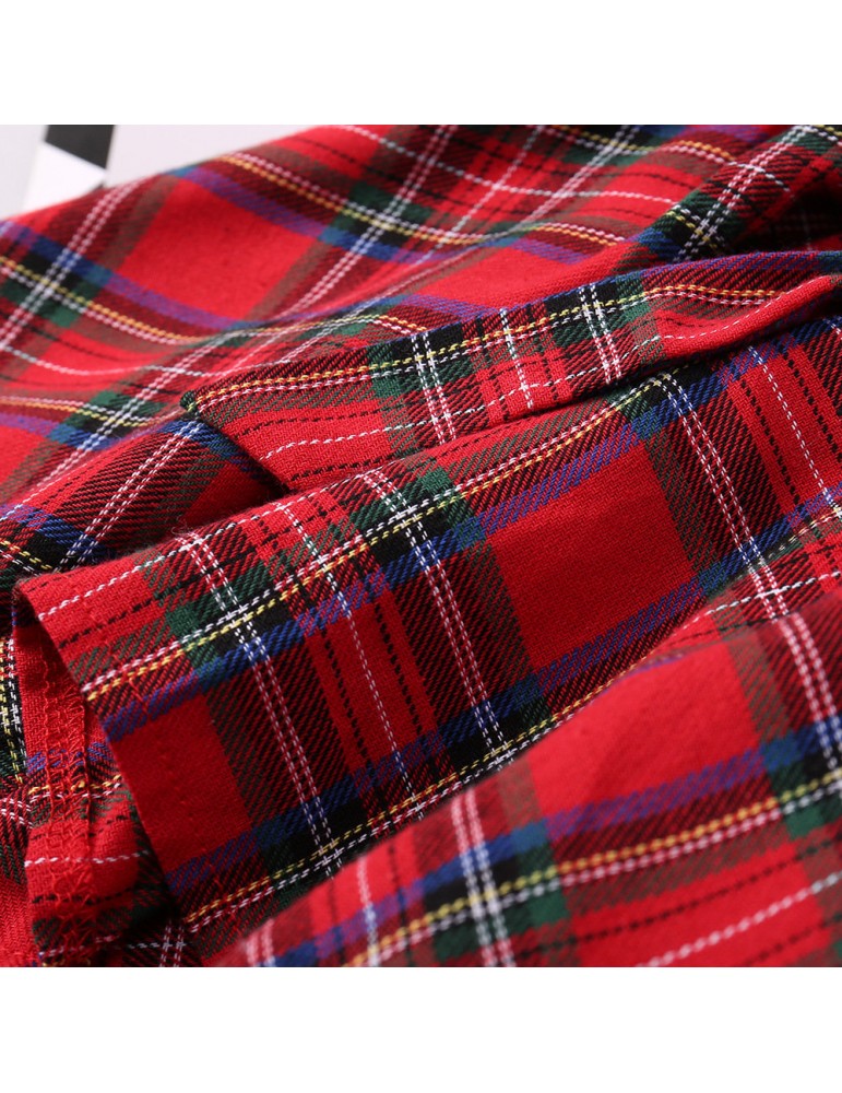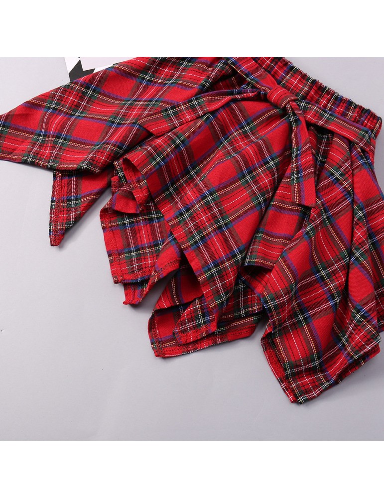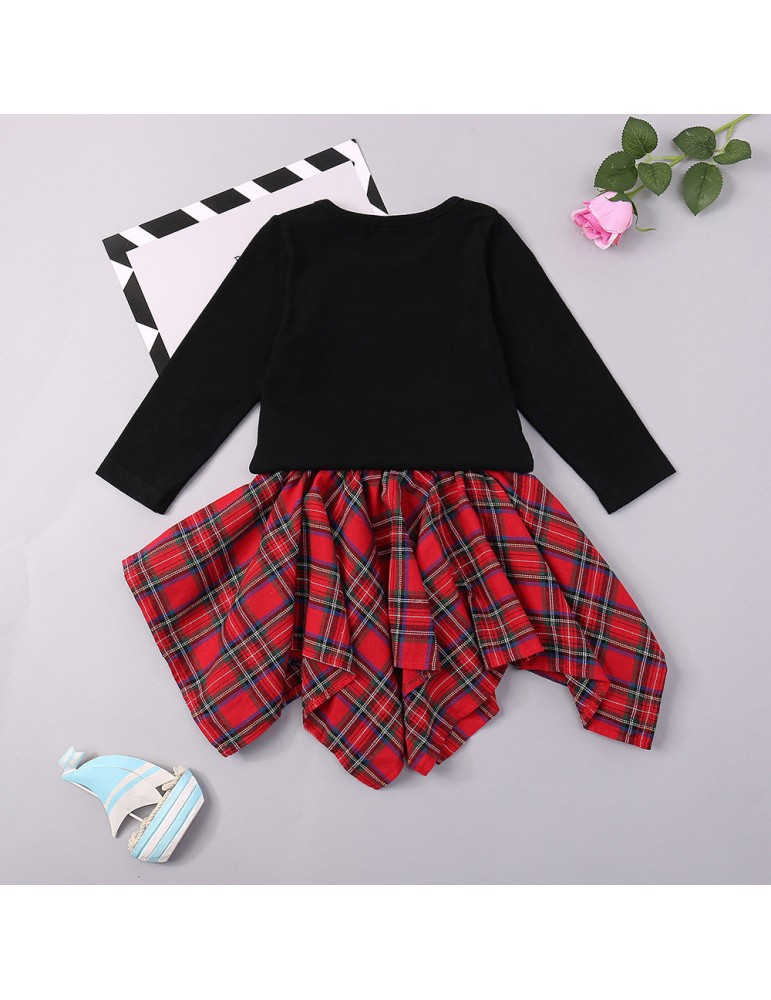 Grid Print Girls Long Sleeve Tops + Irregular Skirt Set For 1Y-7Y