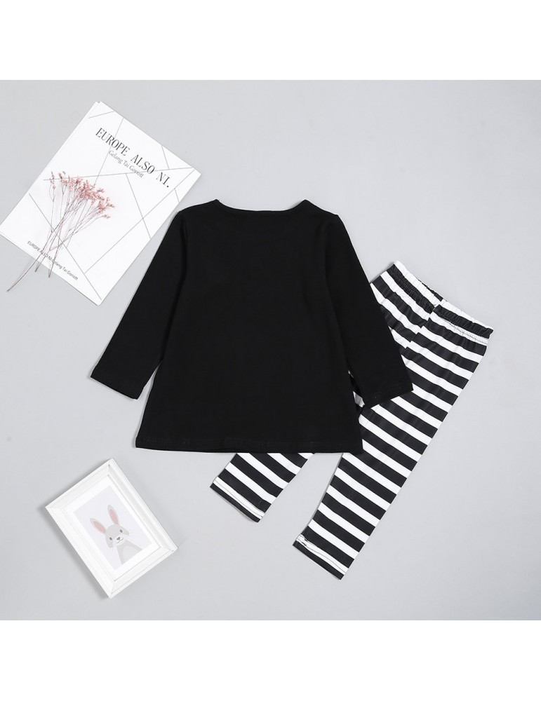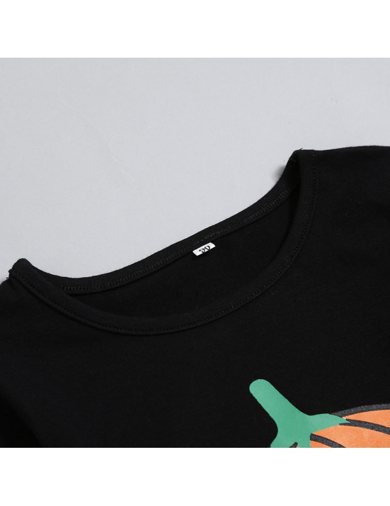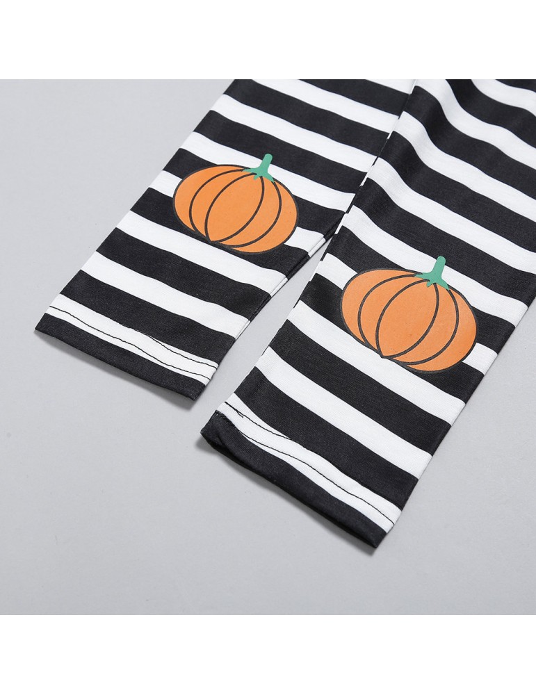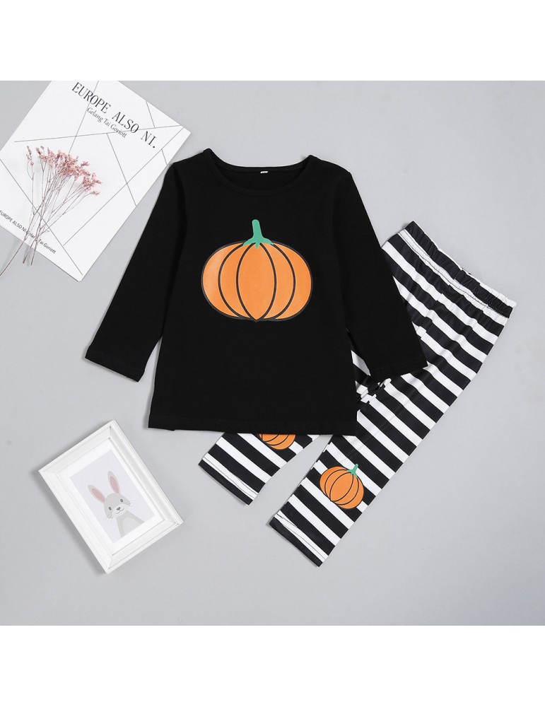 2Pcs Pumpkin Print Girls Casual Set Tops + Pants Clothing Set For 2Y-7Y