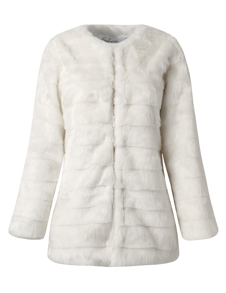 Elegant Pure Color Faux Fur Coats For Women