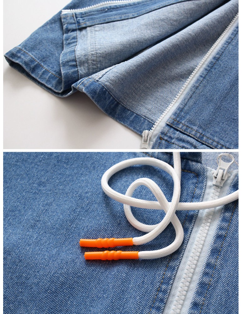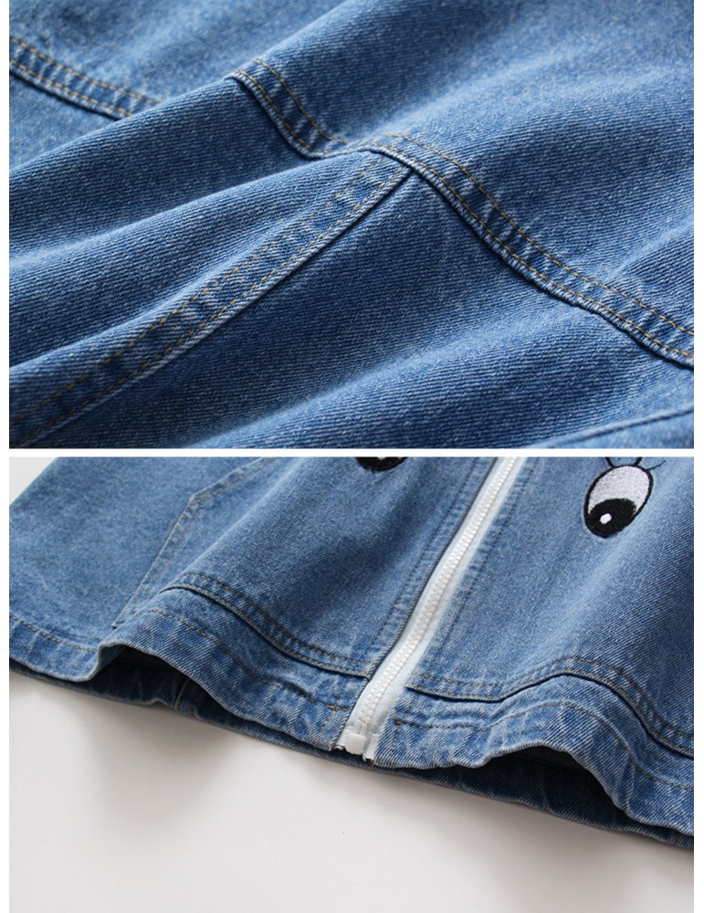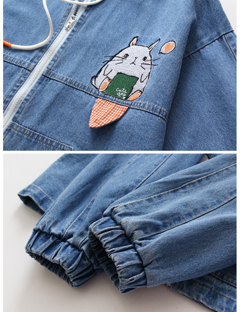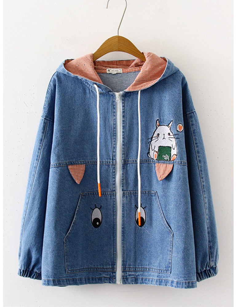 Cartoon Embroidered Ears Hooded Denim Jacket