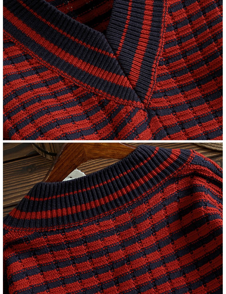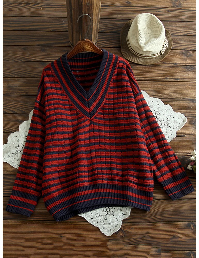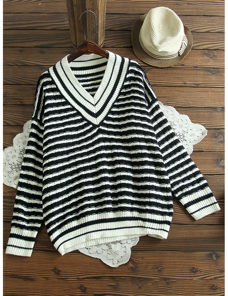 Casual V-neck Striped Sweaters For Women