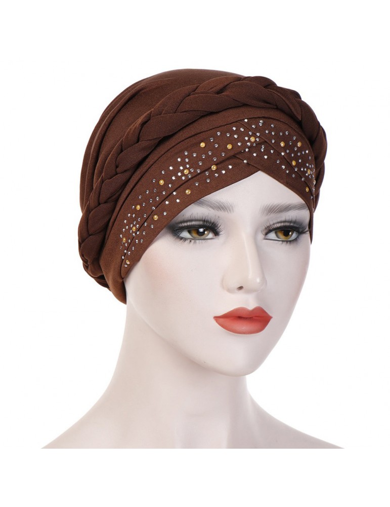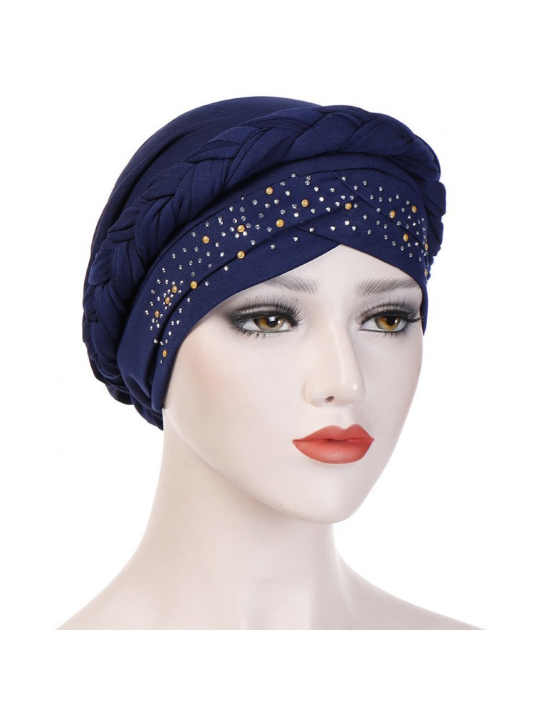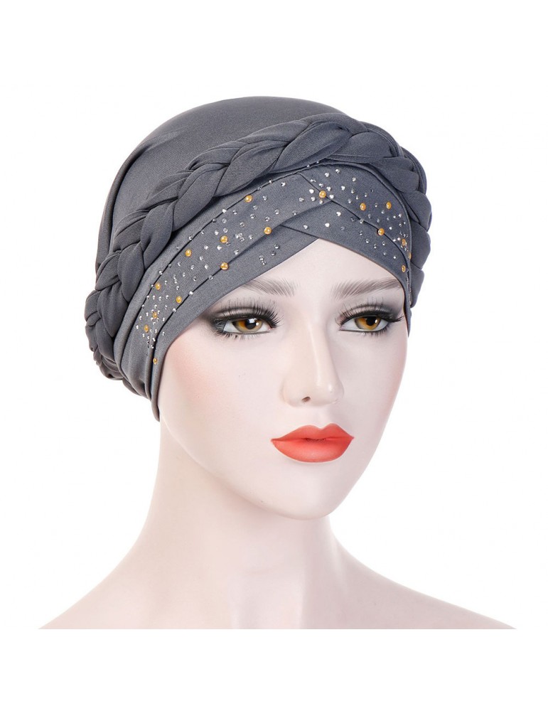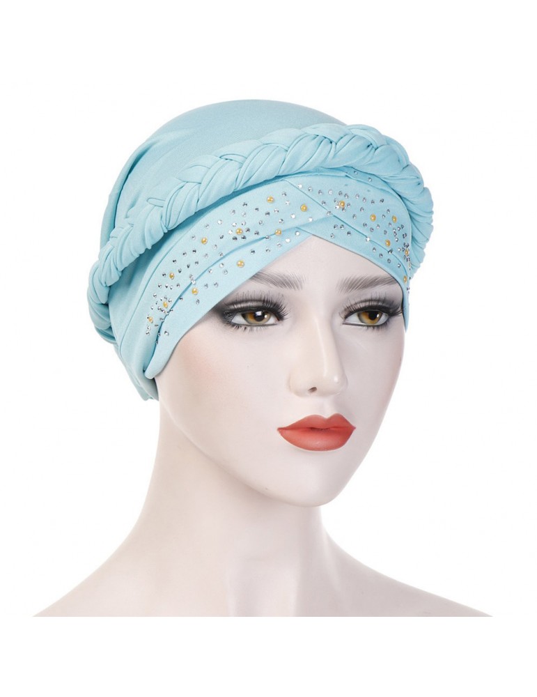 Womens Vintage Tie Point Drill Beanie Cap Casual Milk Silk Soft Solid Bonnet Hat Headpiece