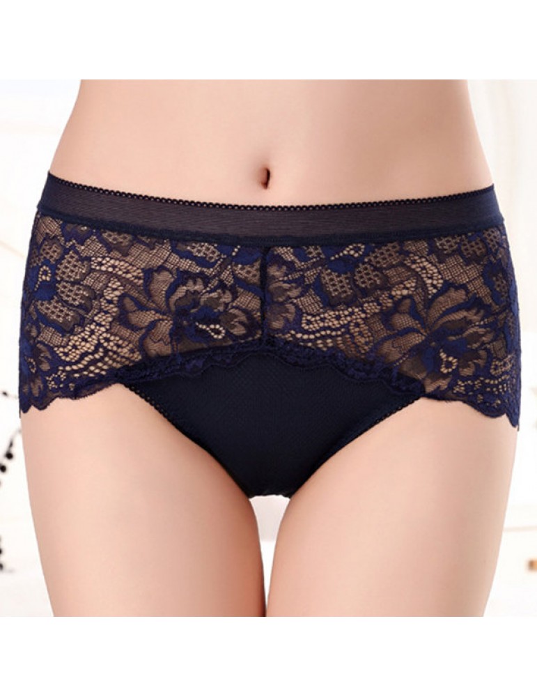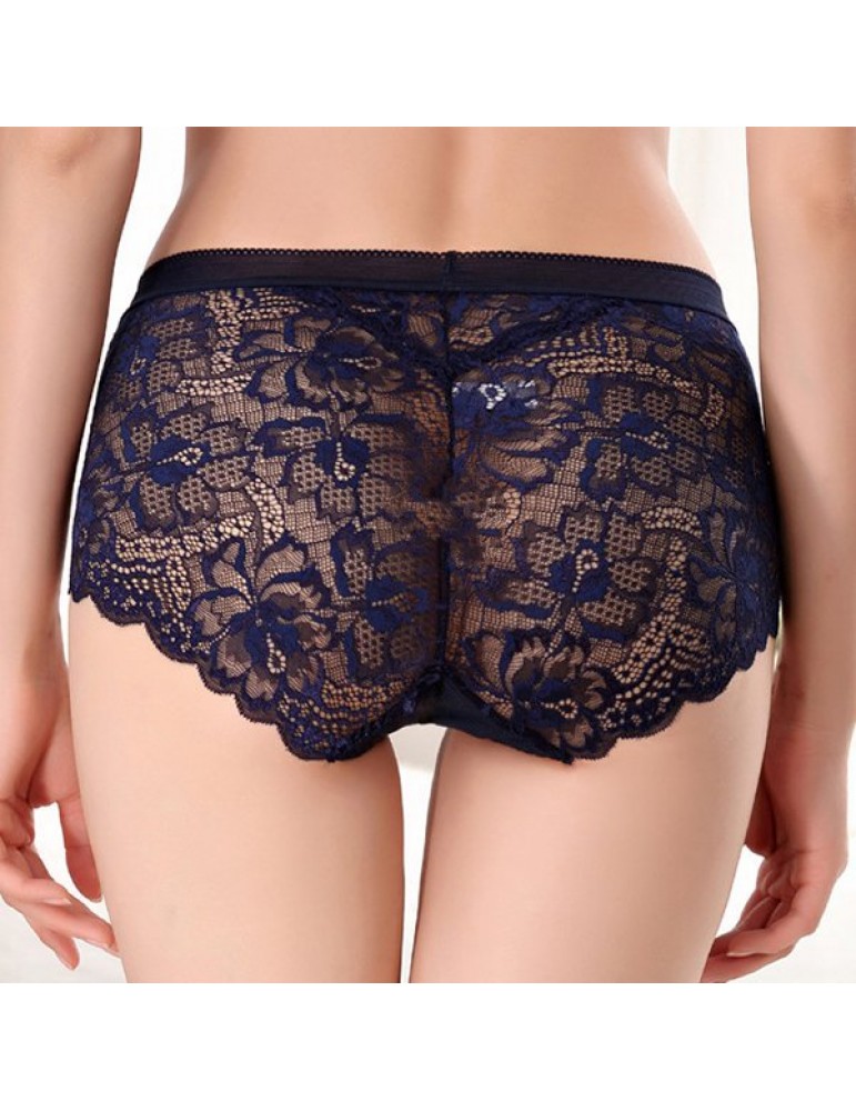 Lace Embroidered Hollow Breathable Mid Waist Panties