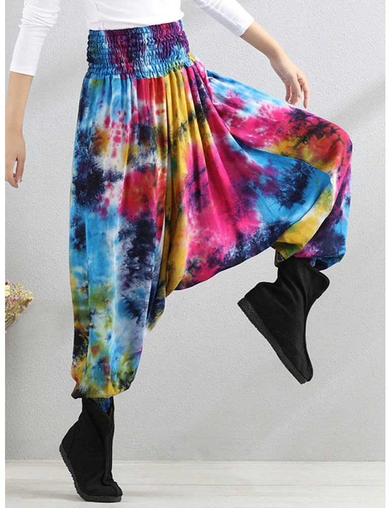Casual Loose Printed Elastic Waist Women Wide Leg Pants