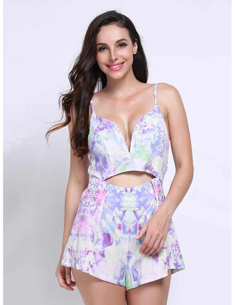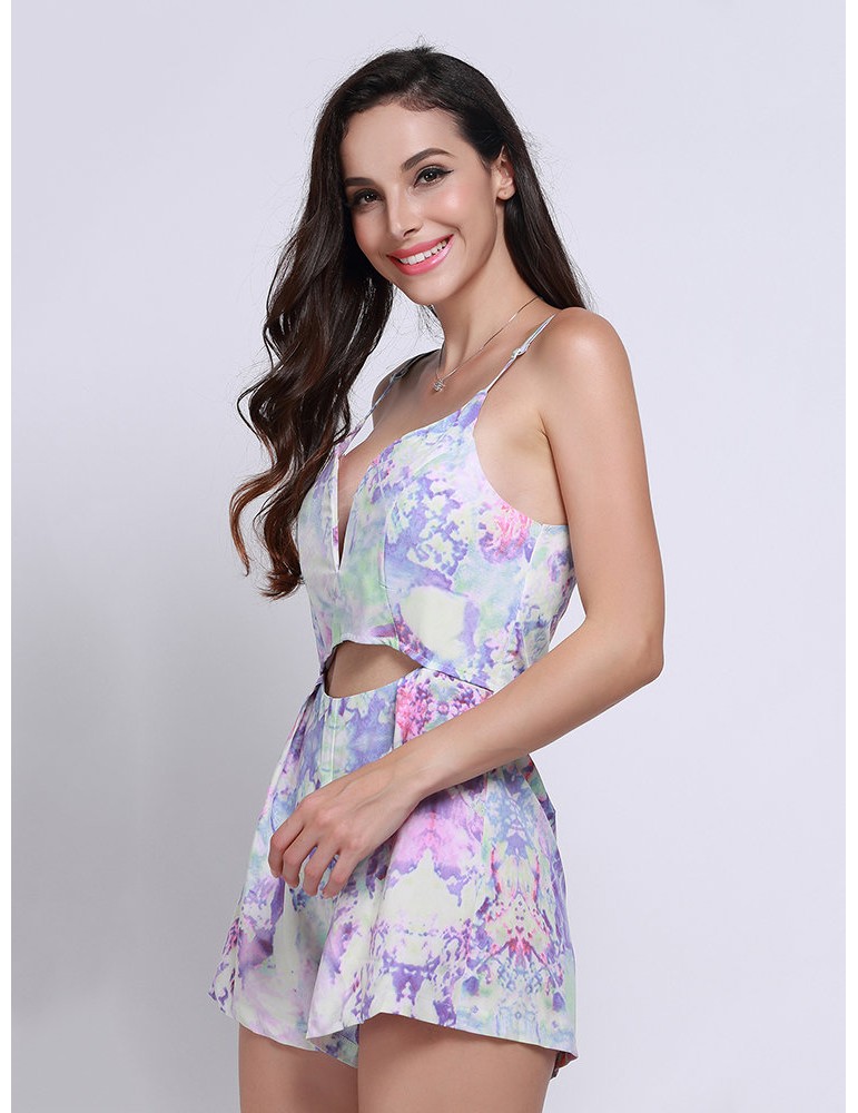 Women Floral Print Backless Cami Jumpsuit