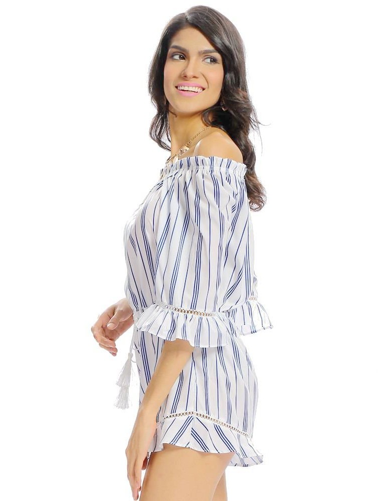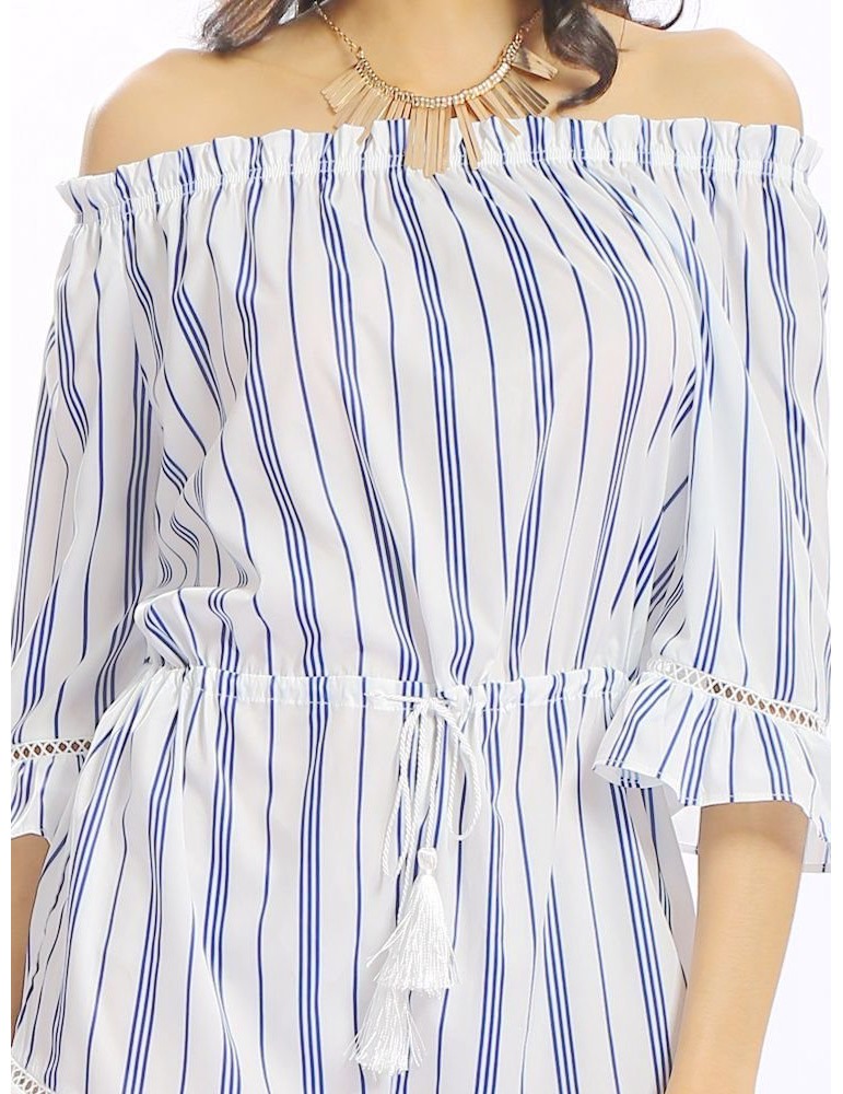 Women Casual Stripe Print Off Shoulder Half Sleeve jumpsuit