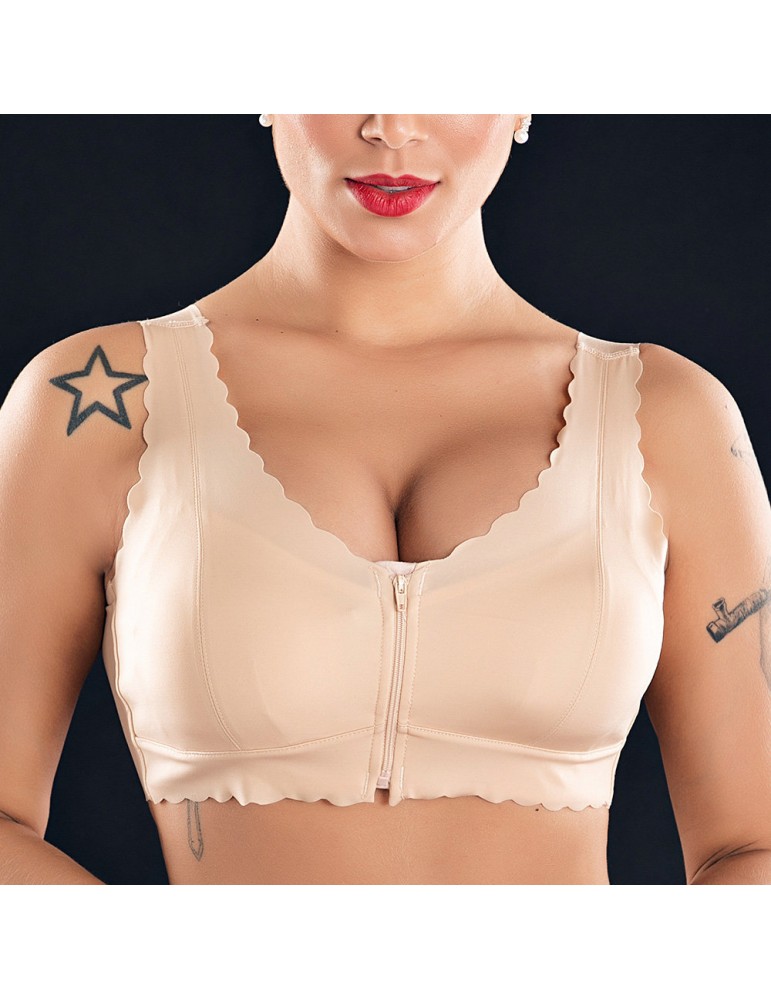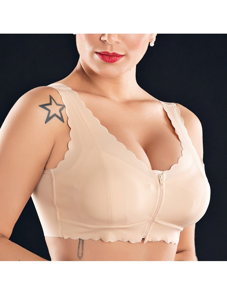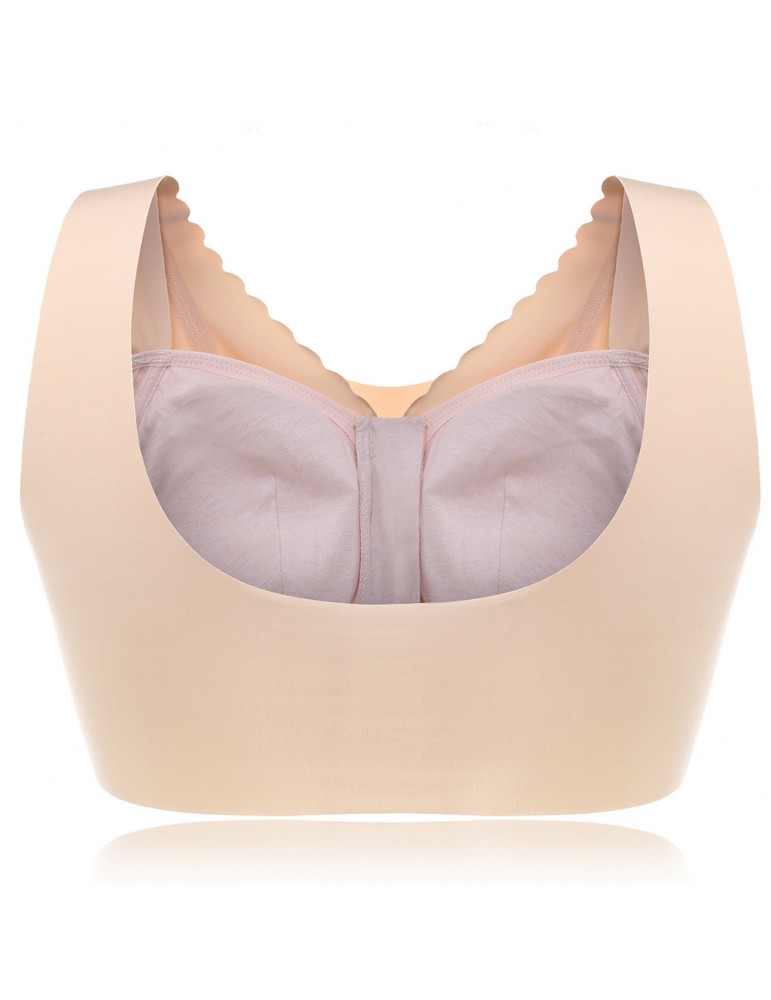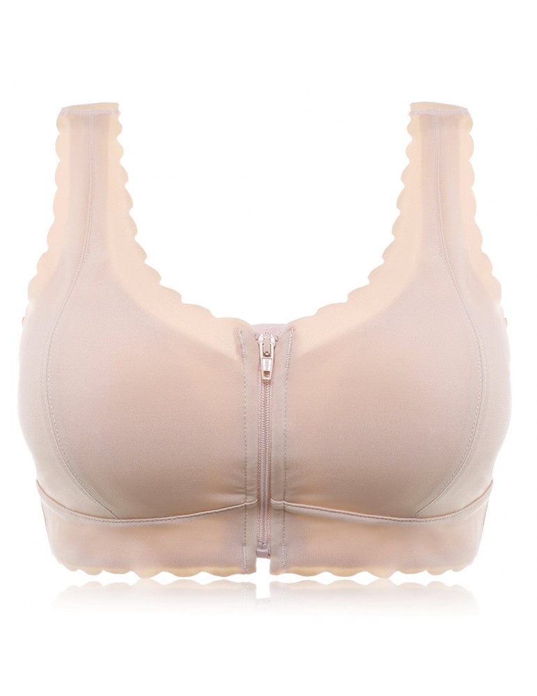 Zip Front Push Up Seamless Ice Silk Wireless Full Cup Bras
