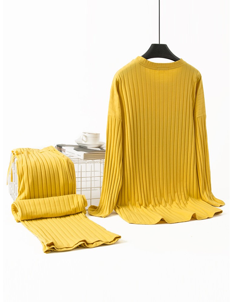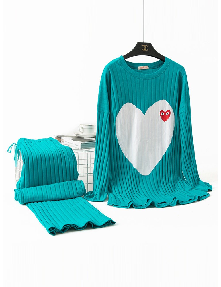 Plus Size Cotton Pajamas Long Sets Big Hearts Print Striped Home Sleepwear