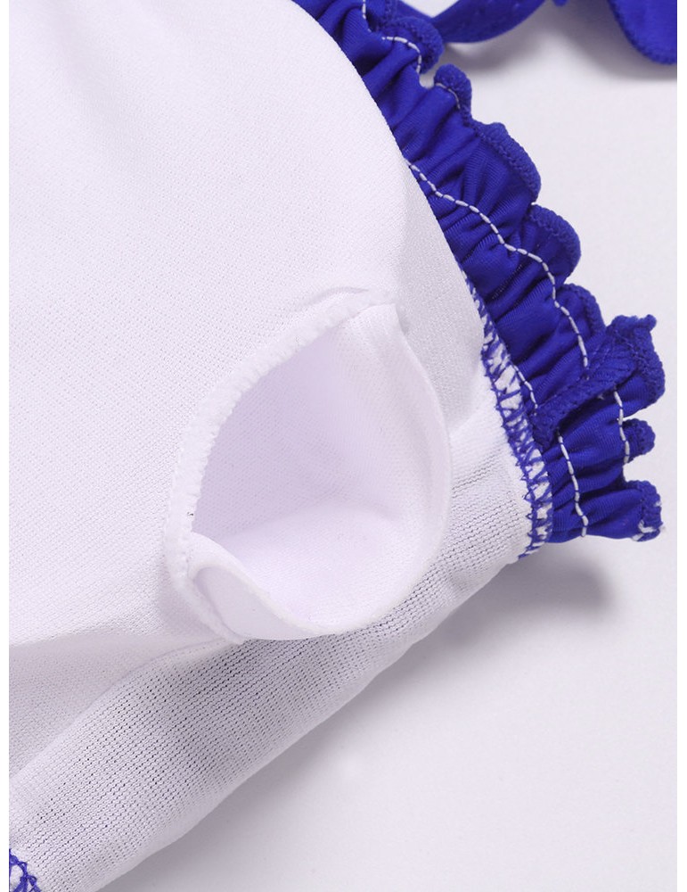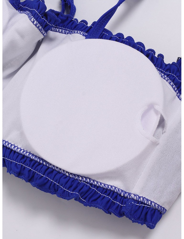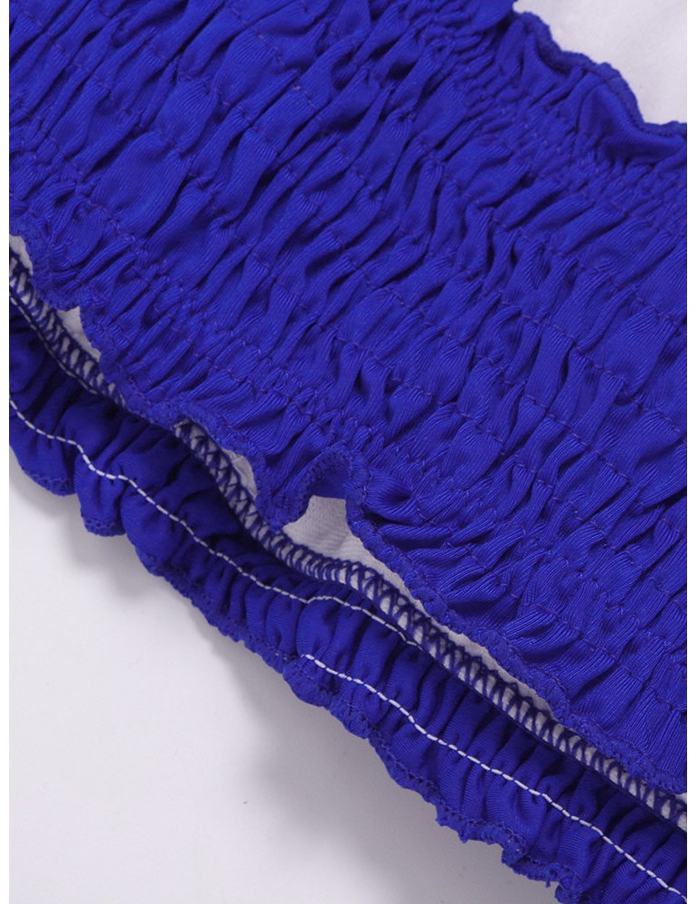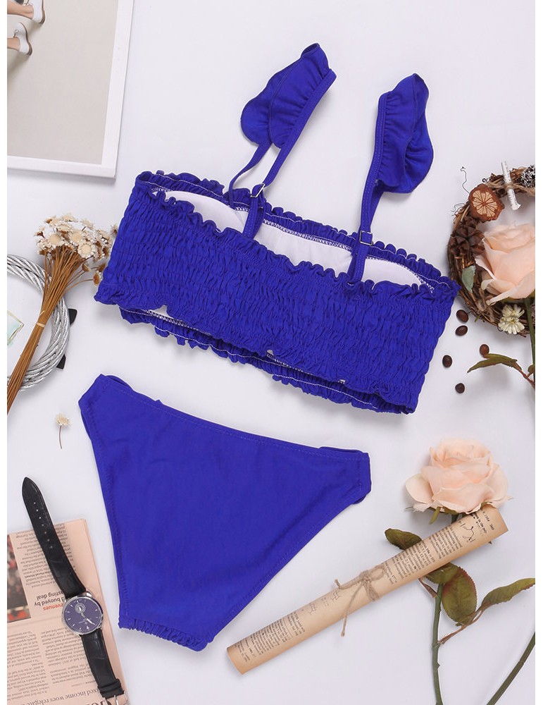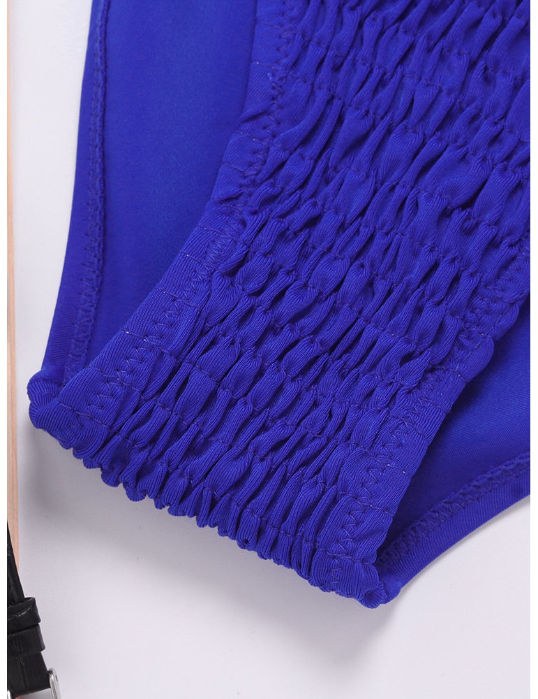 Sexy Pleated Tight Elastic Split Solid Color Bikini Sets Swimwear Swimsuit For Women