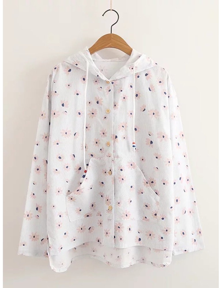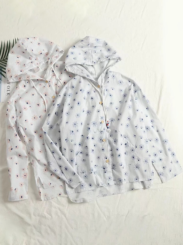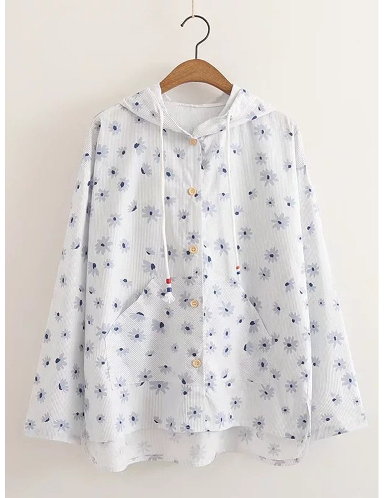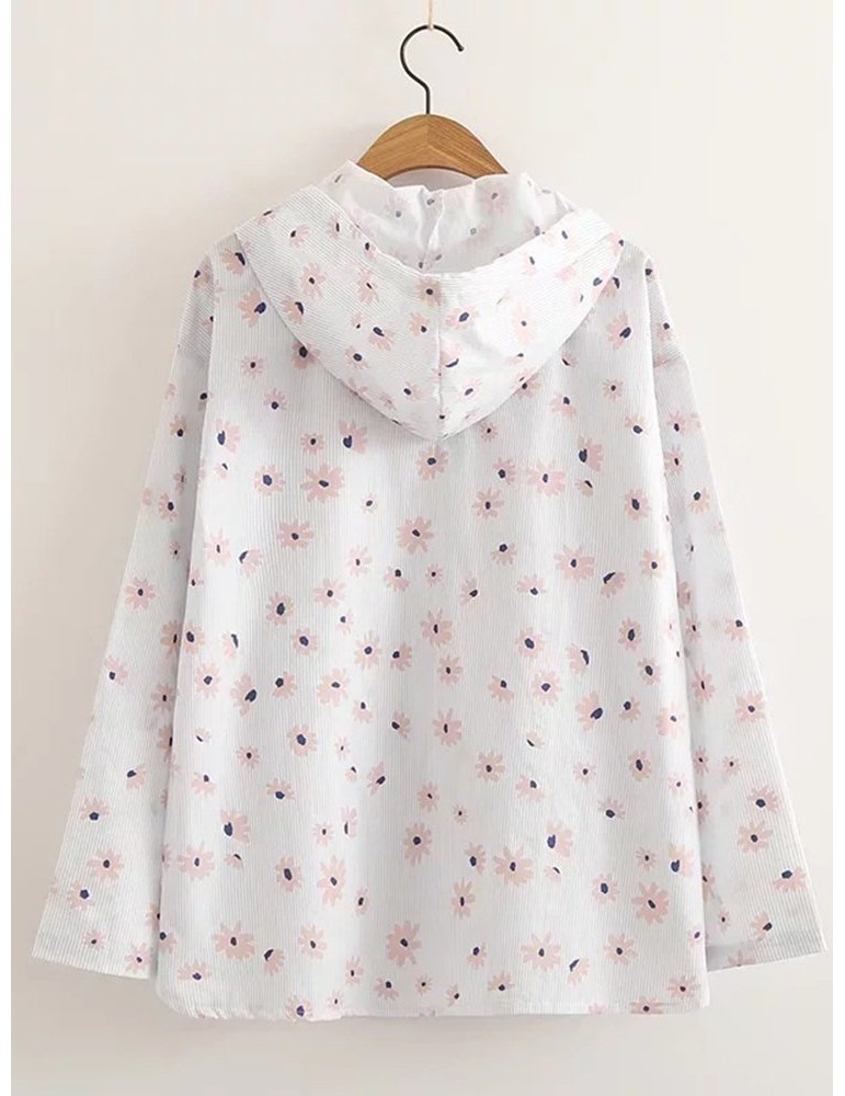 Asymmetrical Floral Print Hooded Long Sleeve Casual Coats